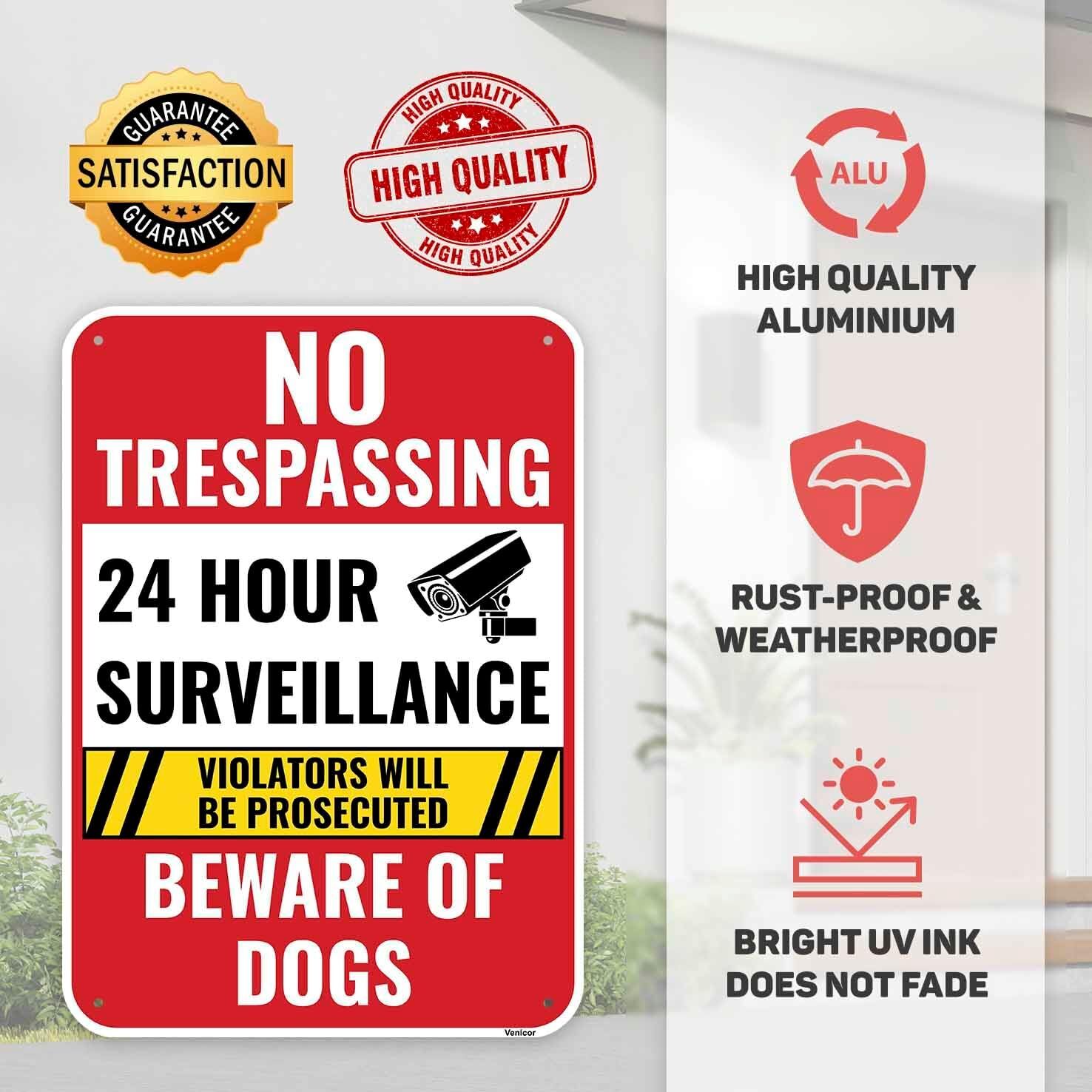 2PC 24 Hour No Trespassing 24 Surveillance Beware of Dogs Sign