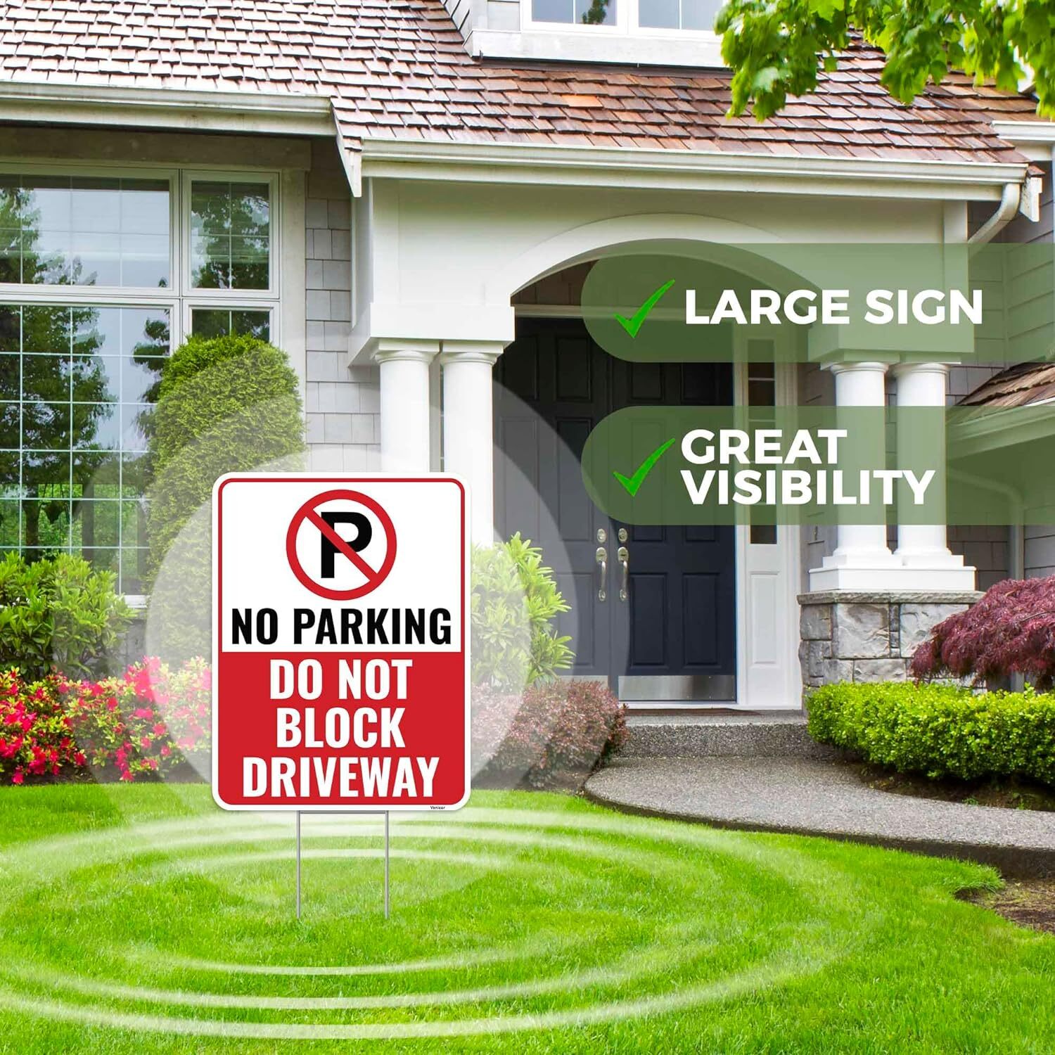 2PC No Parking Do Not Block Driveway Sign with Stakes, 17 Red, White, Black