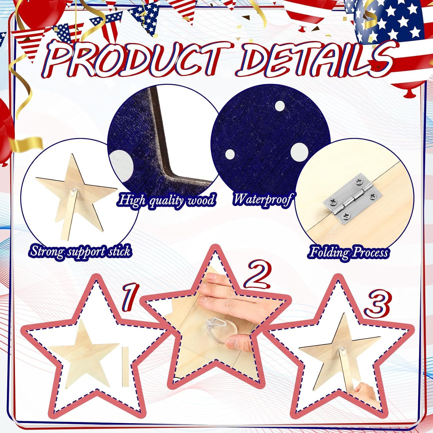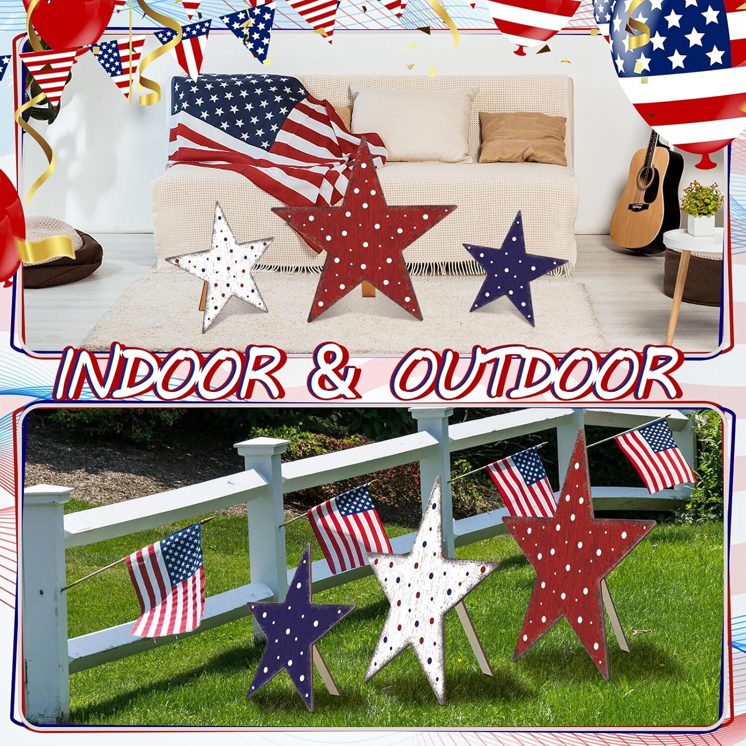 3 Pcs 4th of July Porch Sign Patriotic Large Wooden Stars Outdoor Decor...