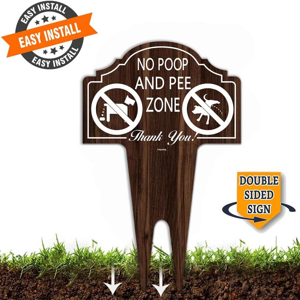 No Poop and Pee Zone Sign Double Sided Clean Up After Your Dog wooden,brown