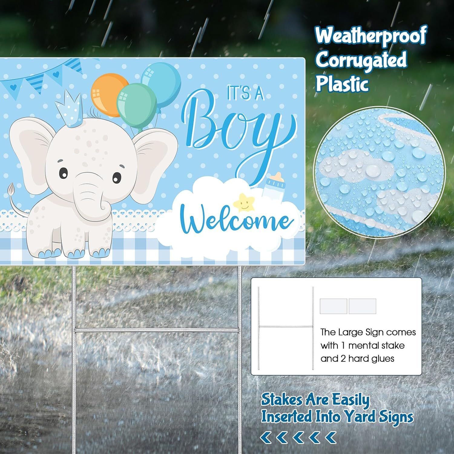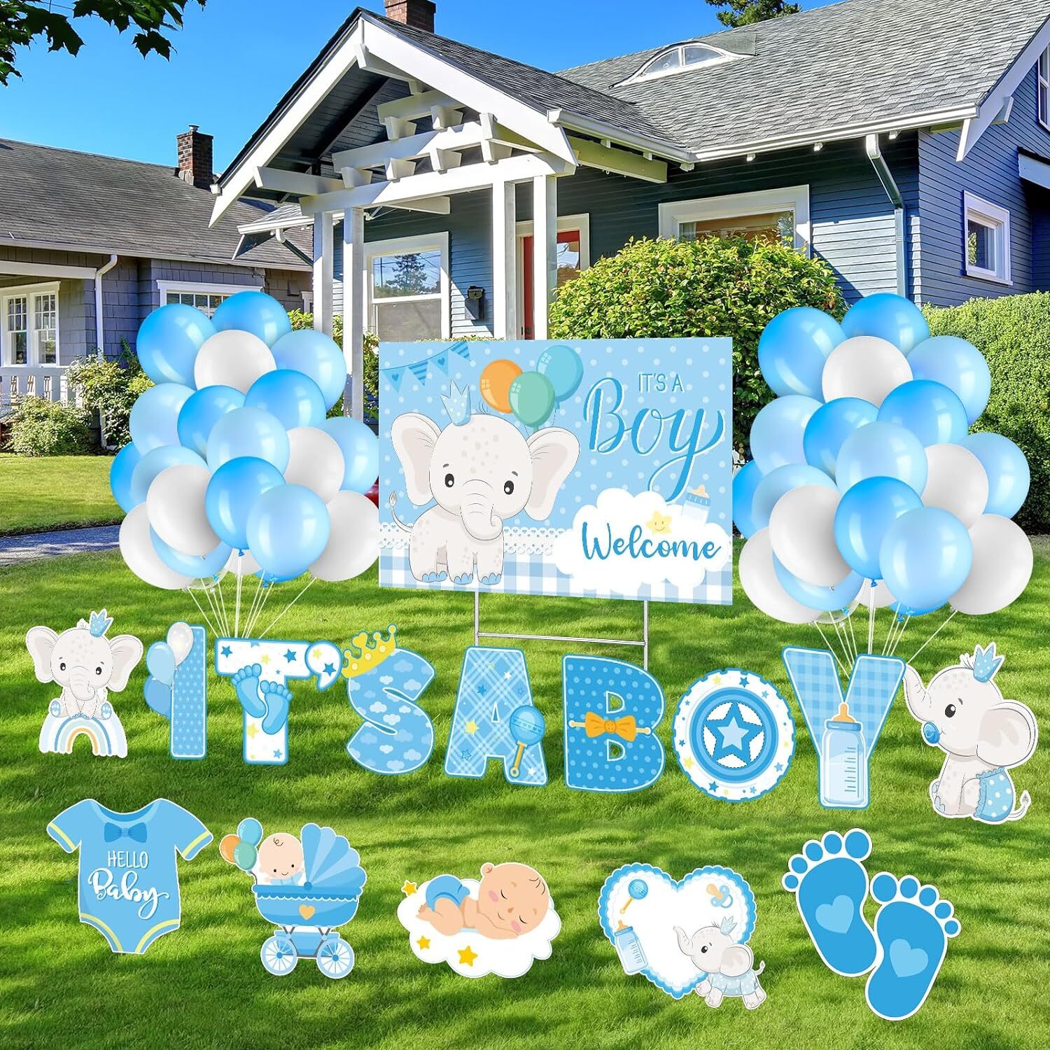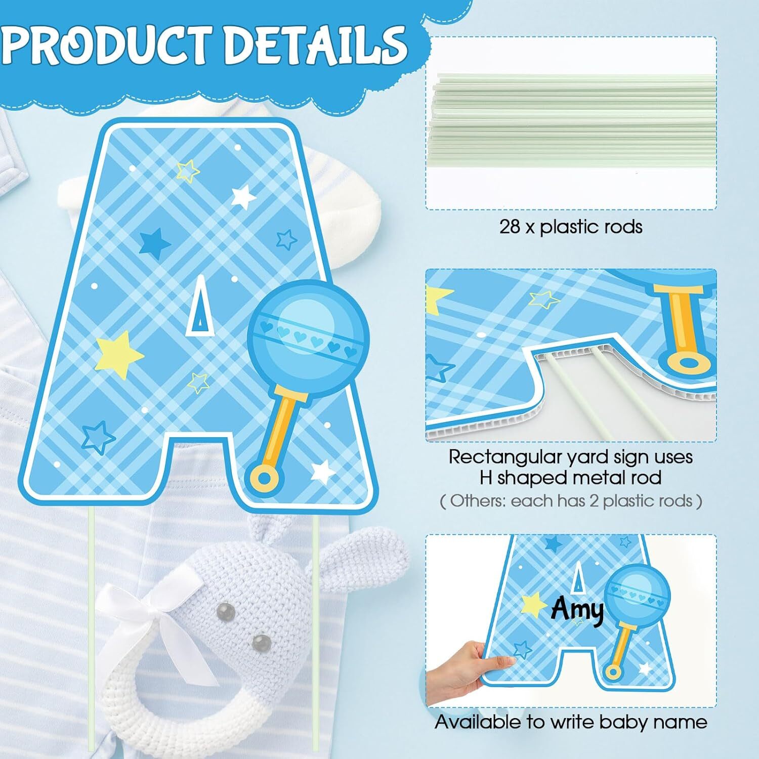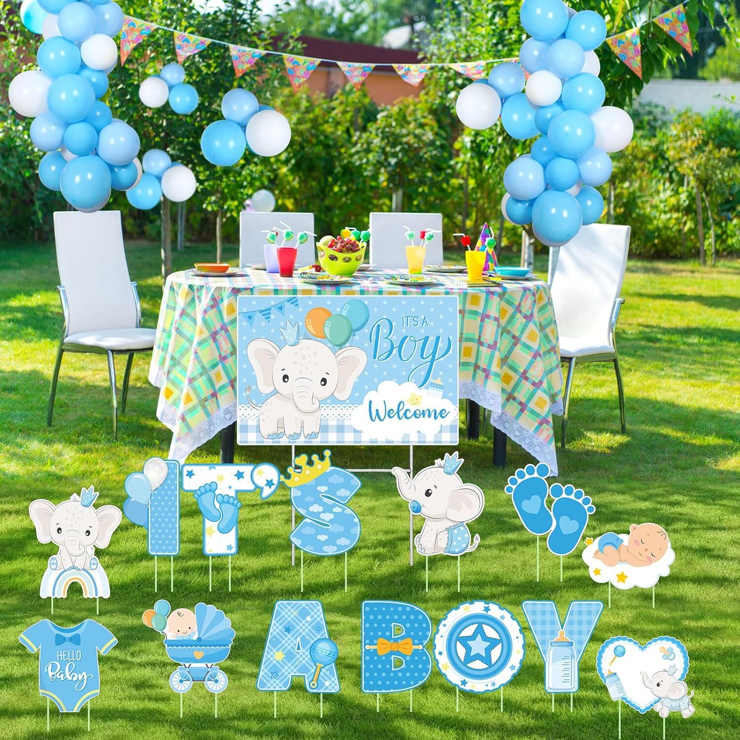 15 Pcs Gender Reveal Decorations Baby Shower Yard Sign with Stakes Boy, Blue