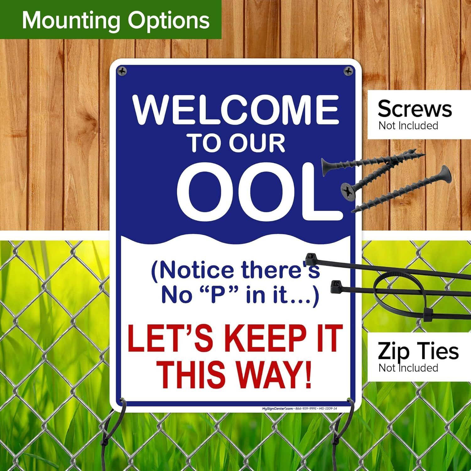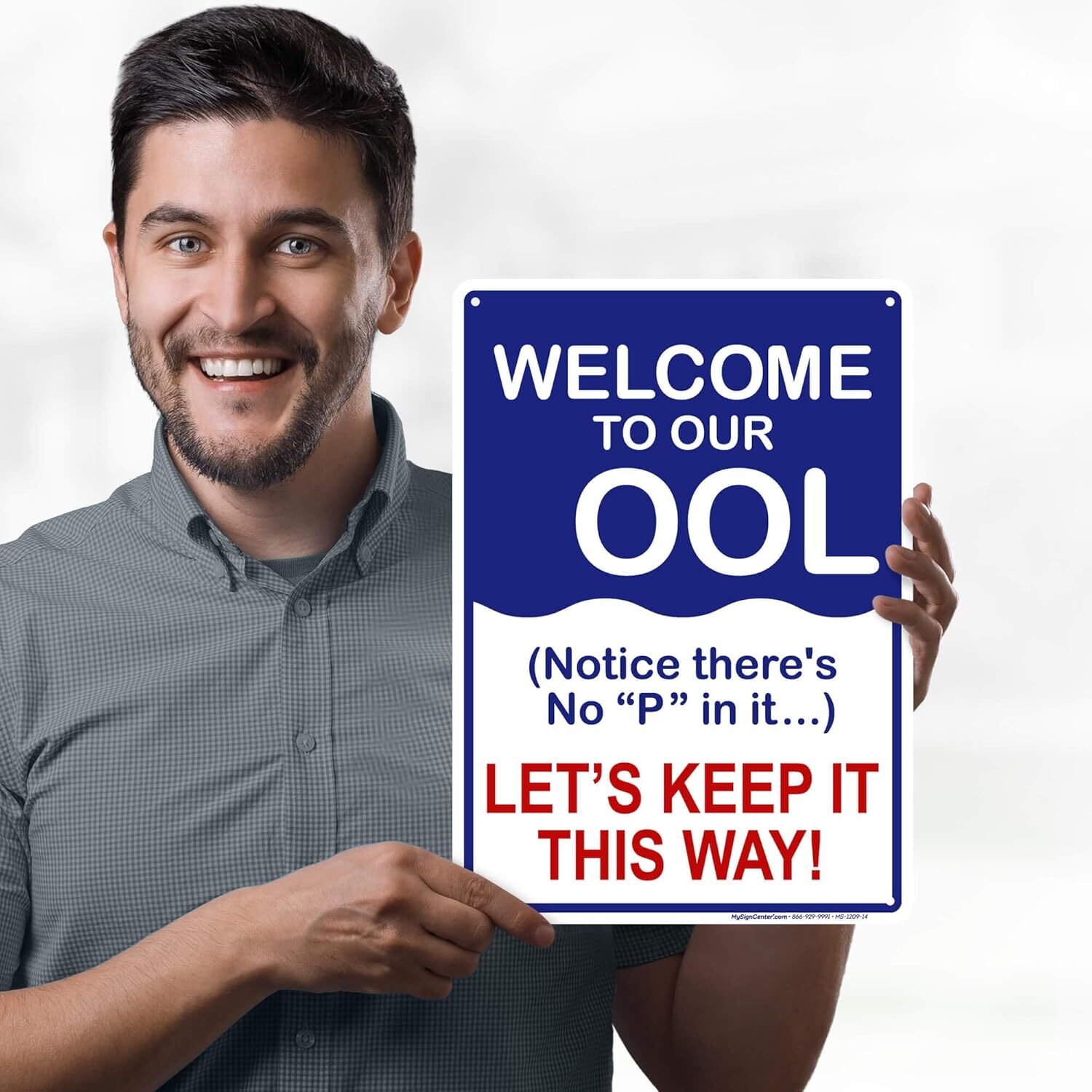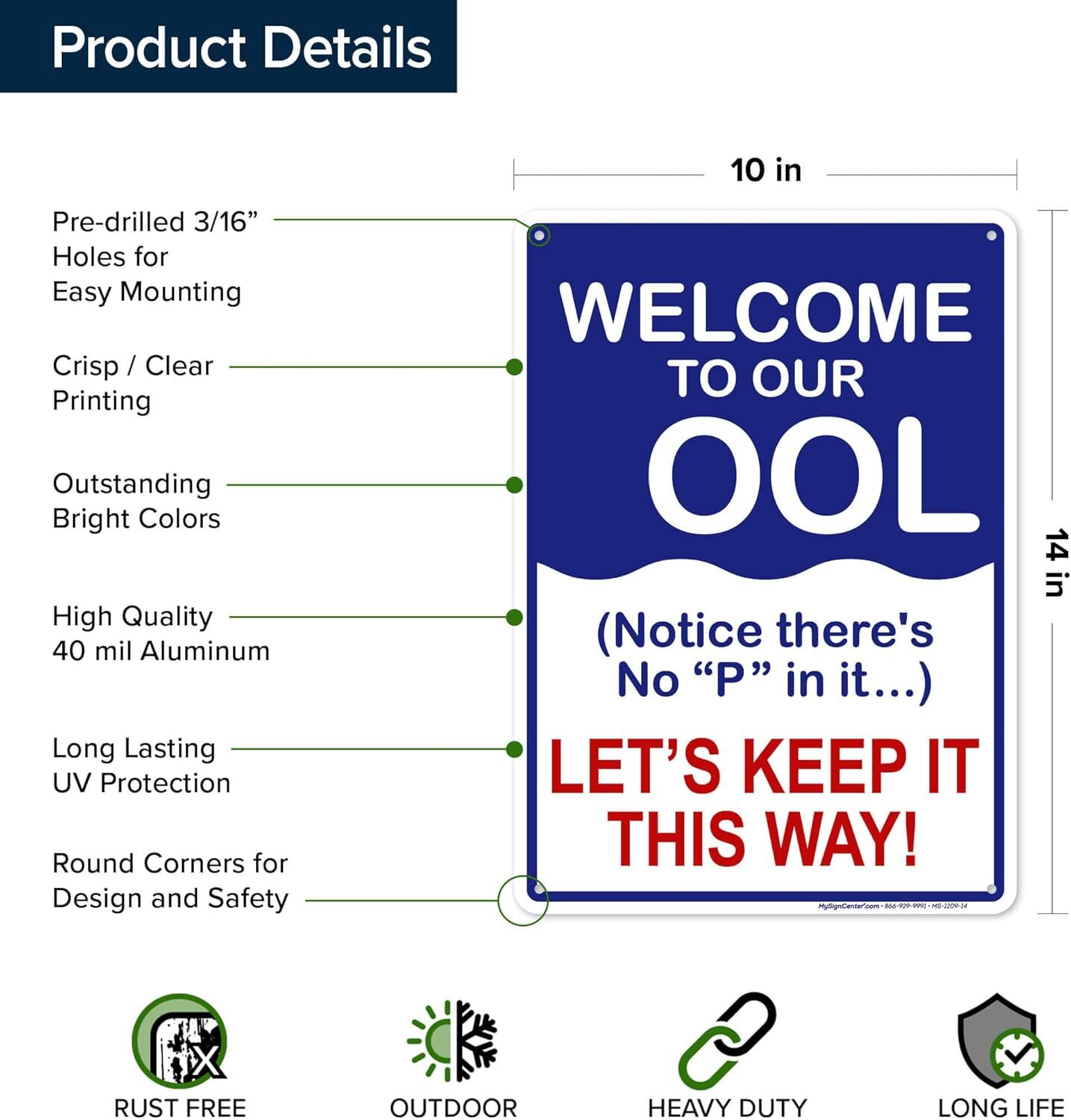 как выглядит Welcome To Our Ool Lets Keep It This Way 10x14 - Aluminum, Blue and White фото