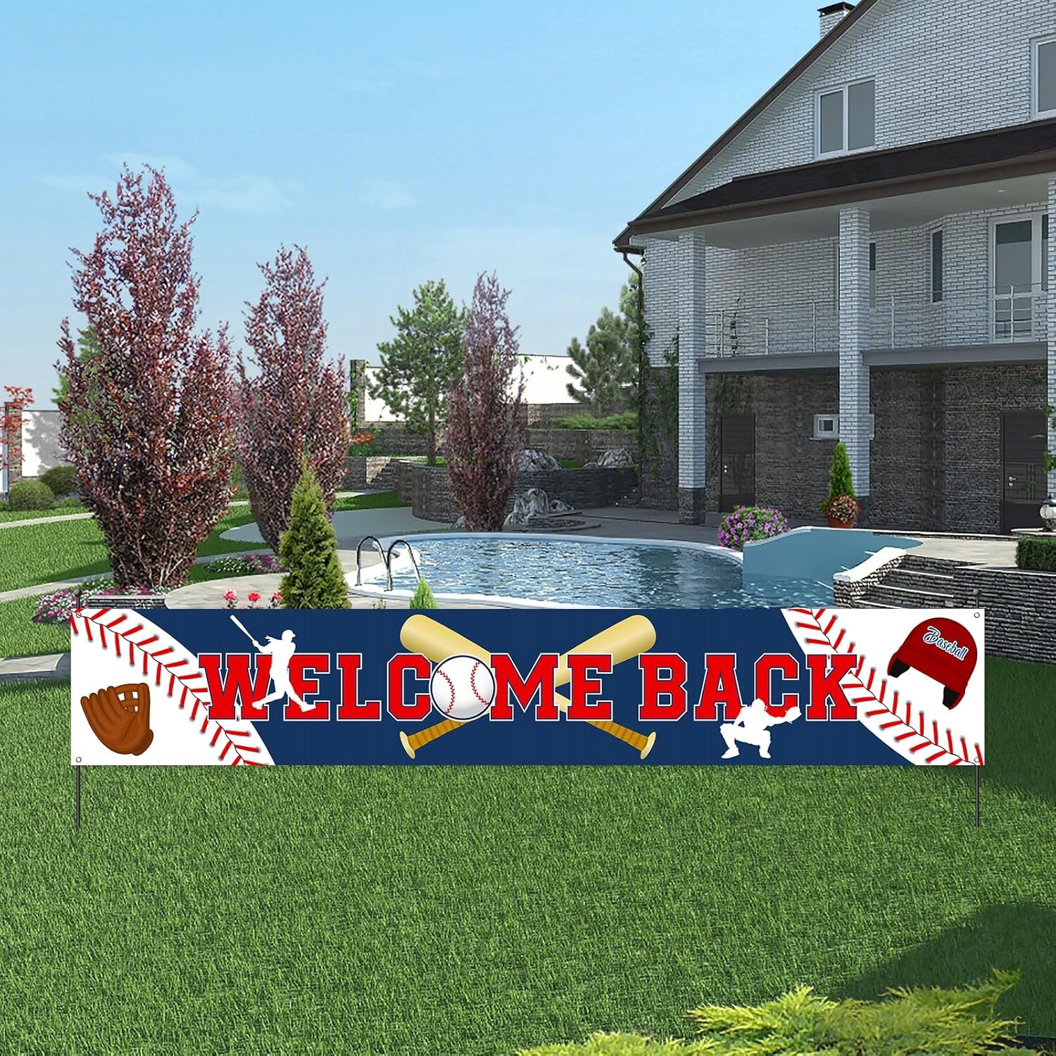 Large Welcome Back Banner, Baseball Theme Home Yard Sign, Multicolor