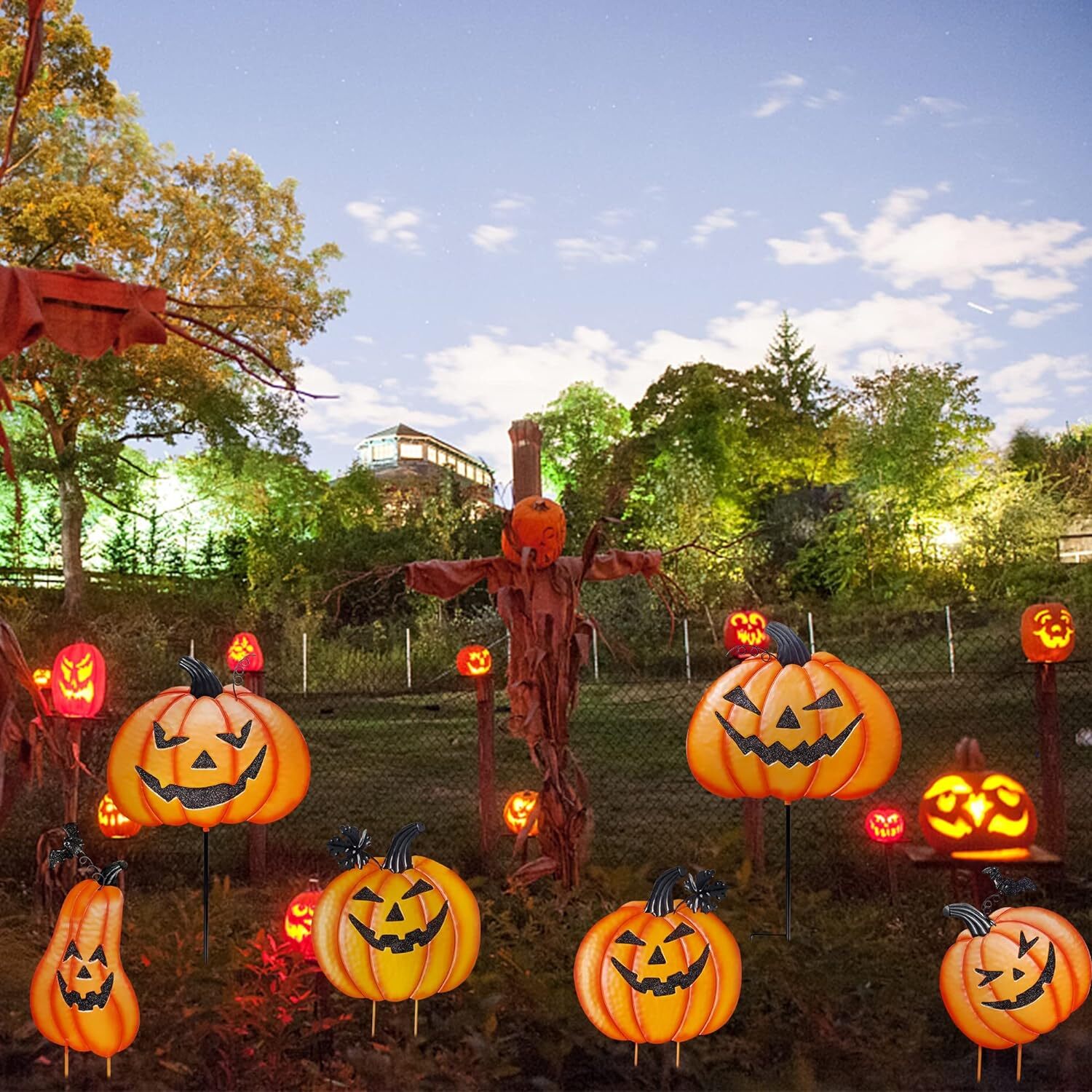 2 Pack Halloween Yard Decoration Stakes, Trick or Treat Happy Orange