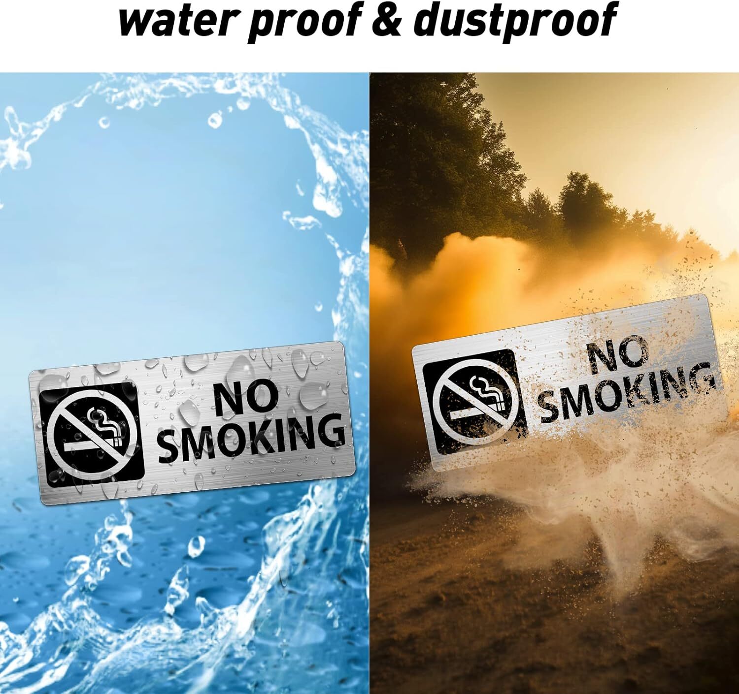 No Smoking Sign Aluminum 7x3 Inch Self-Adhesive Heavy Duty Metal Silver