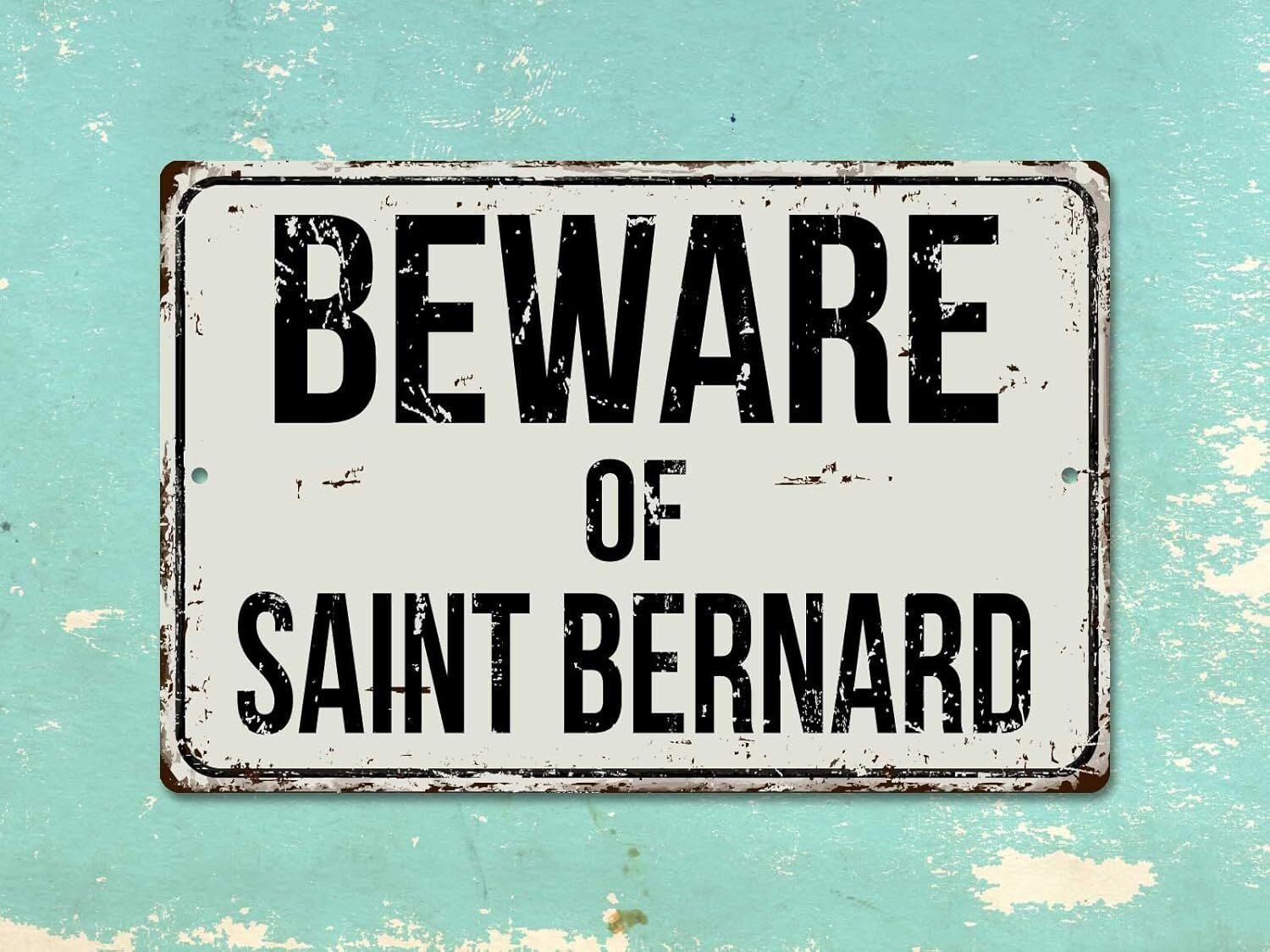 486VS Beware of Saint Bernard 8 x 12 Vintage Aluminum Retro Metal Sign