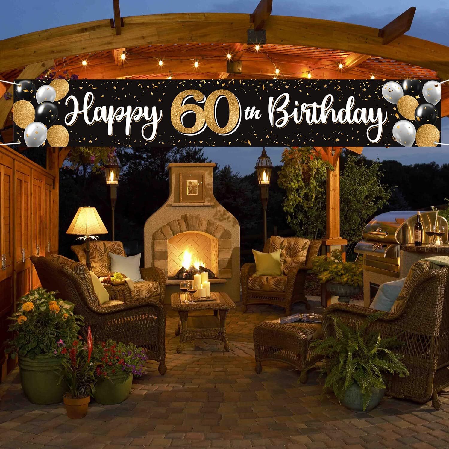 как выглядит Happy 60th Birthday Black Gold Yard Sign Banner - Cheers to Sixty фото