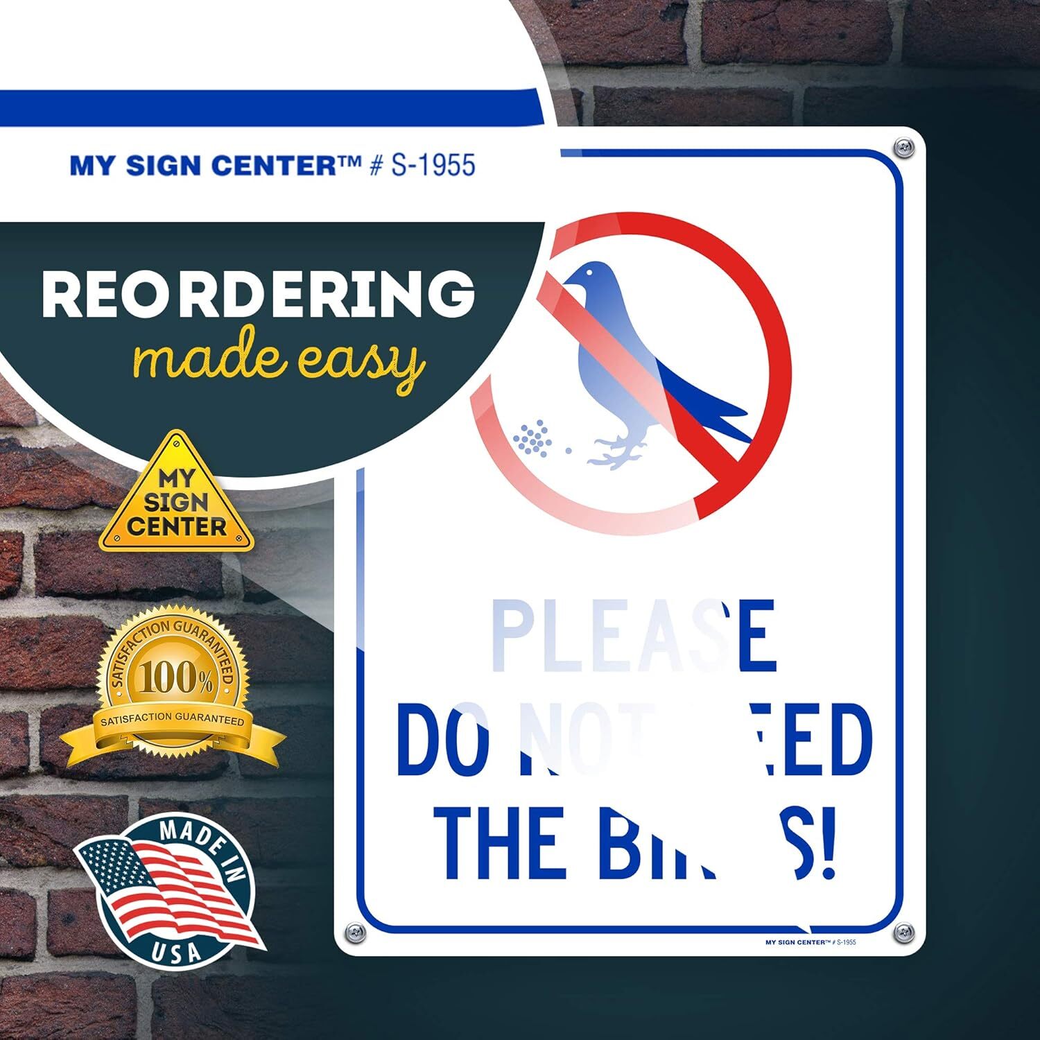 как выглядит Please Do Not Feed Bird Sign, 10" x 14" 0.40 x Aluminum, White фото