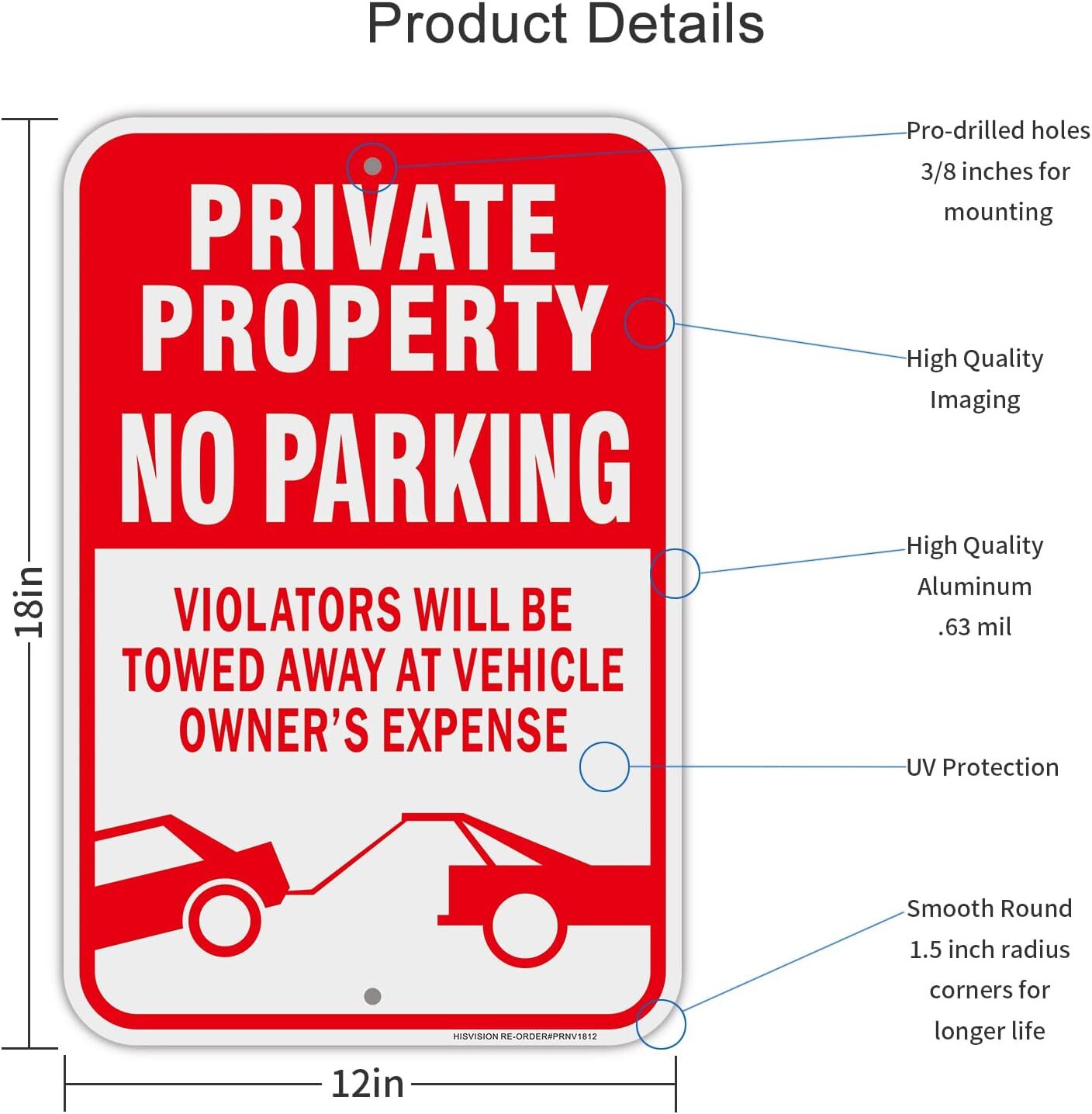 2Pack Private Property No Parking Violators Will 12x18Inches, 12x18inch