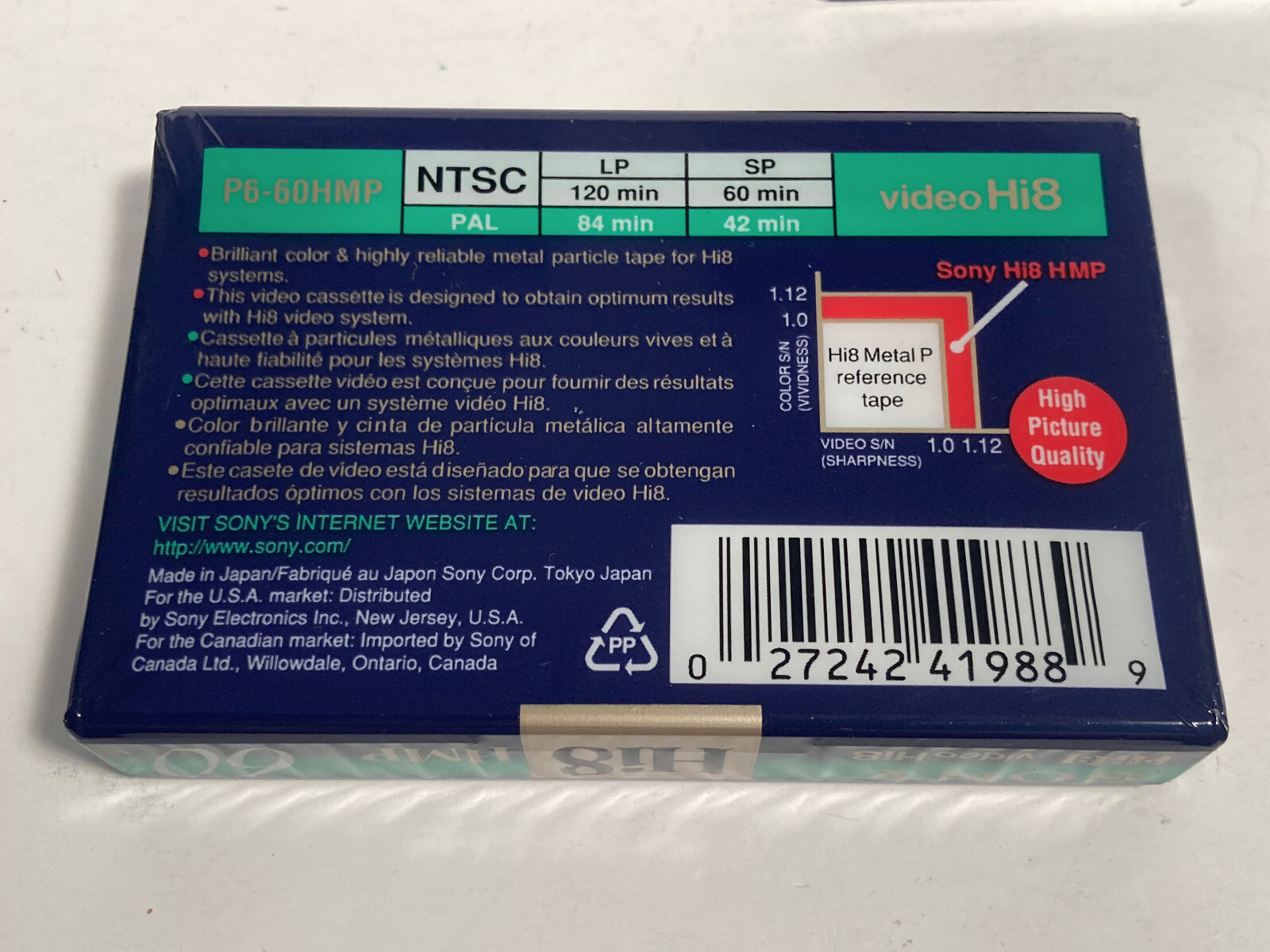 как выглядит VTG SONY Hi8 60 min NTSC HMP 8mm Video Cassette - New Sealed фото