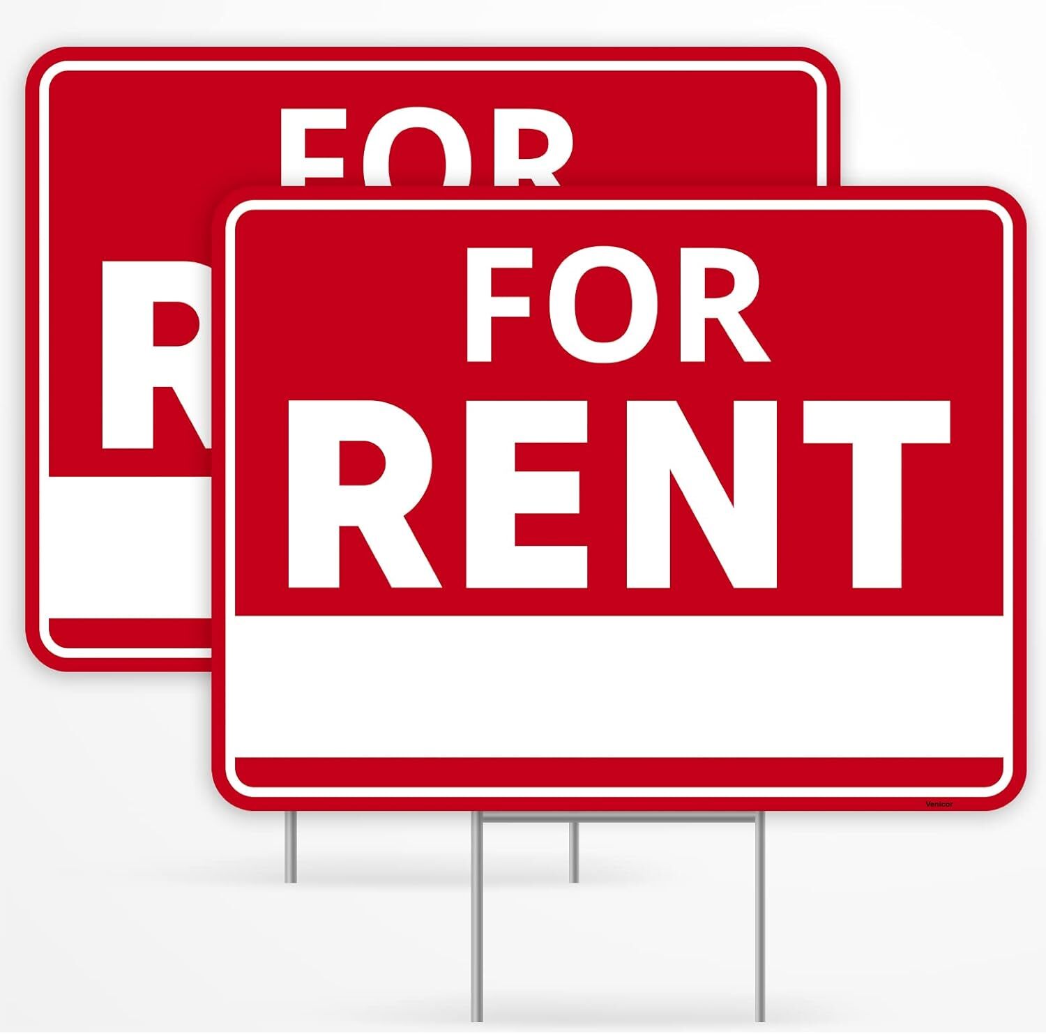 2PC For Rent Sign with Stand, 17 Inches by 13 - Double Sided Signs -...