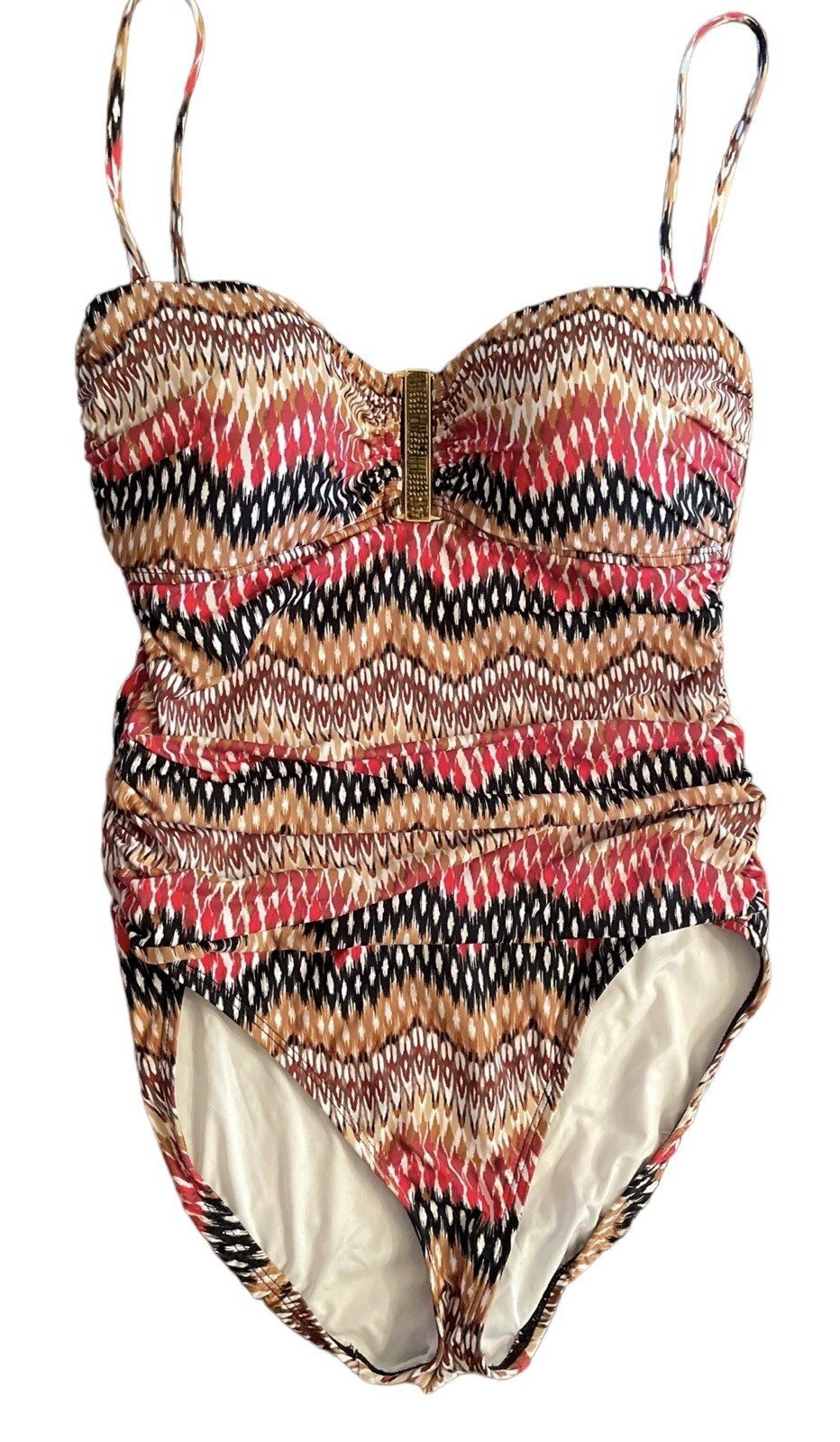 La Blanca Swim Suit SZ 12 Multi-Color one piece High Leg Rouched Bodice