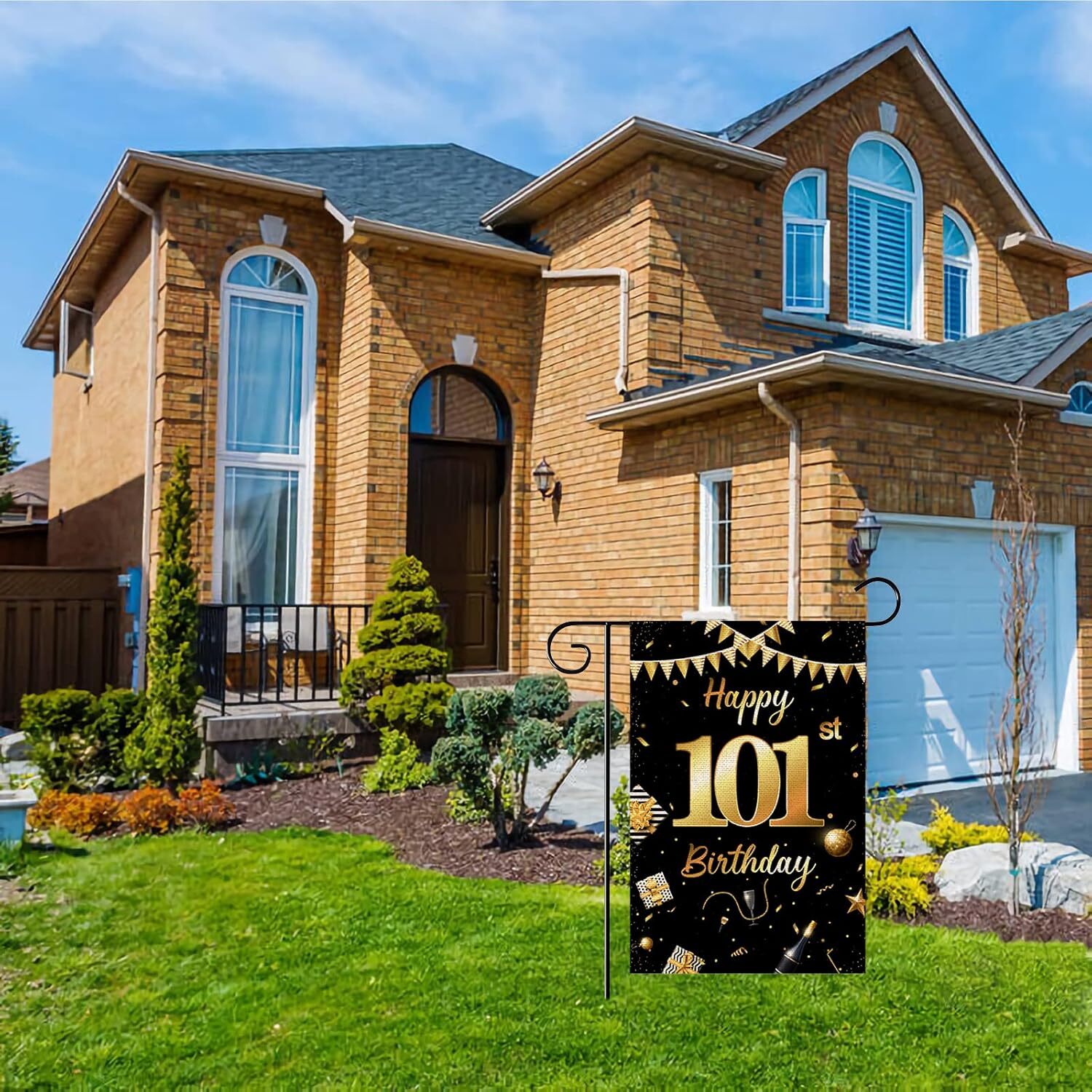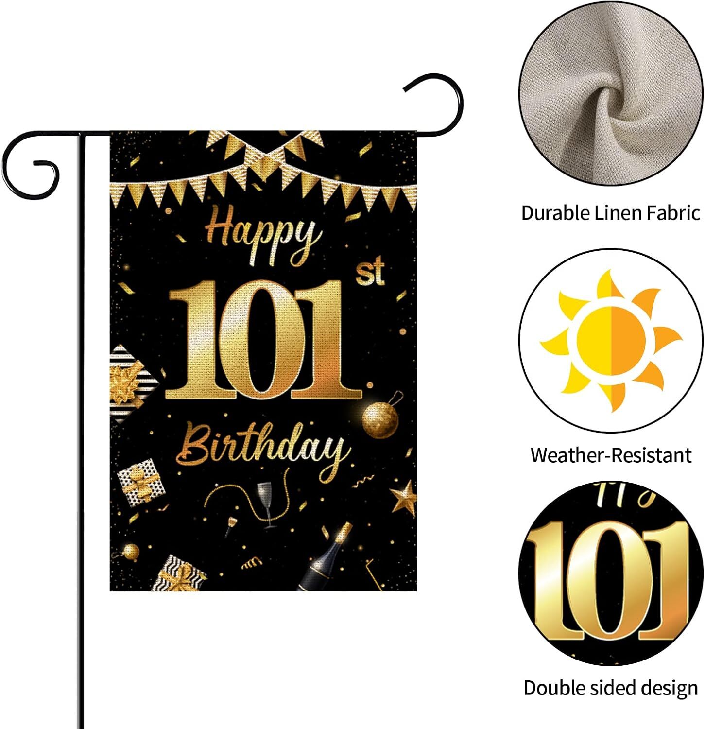 Happy 101st Birthday Garden Flag,101st Anniversary Party Yard House Black