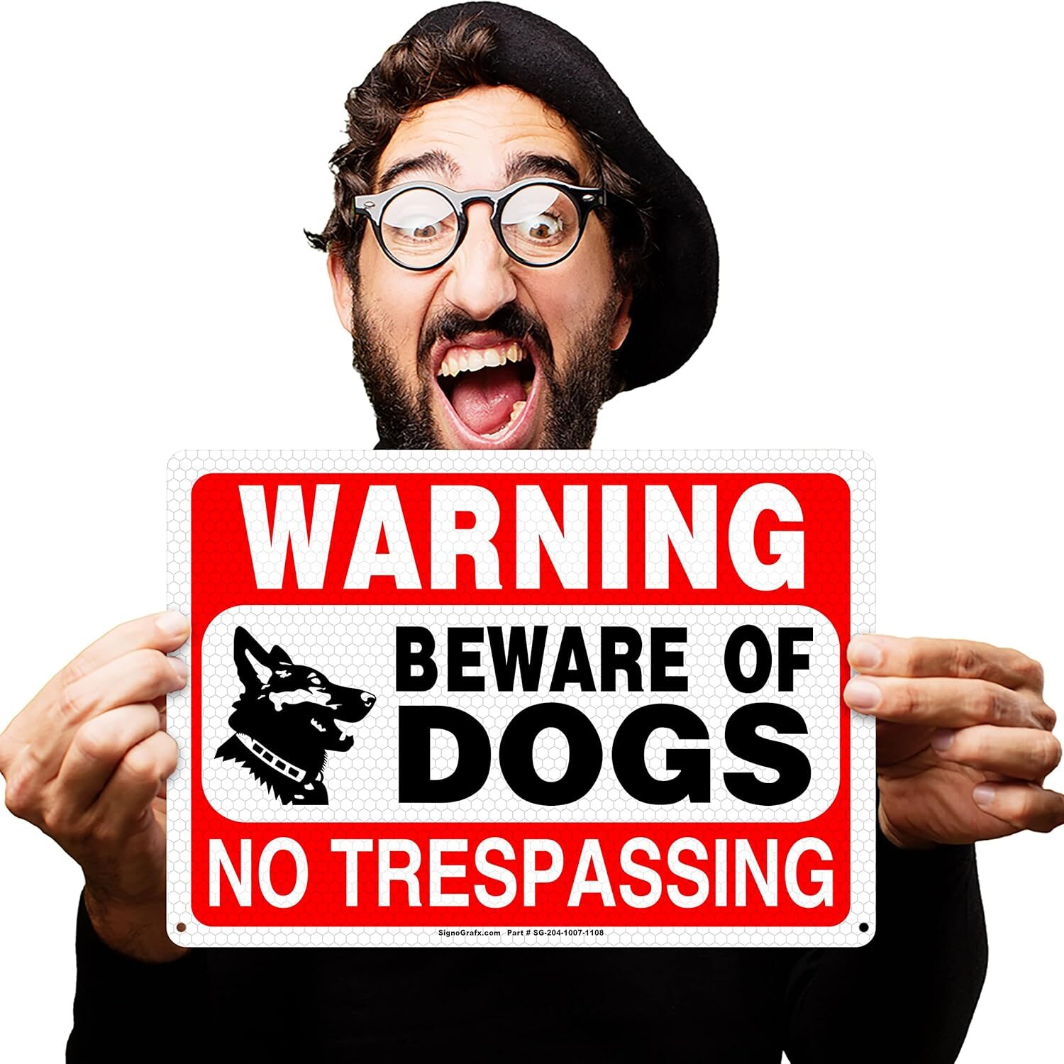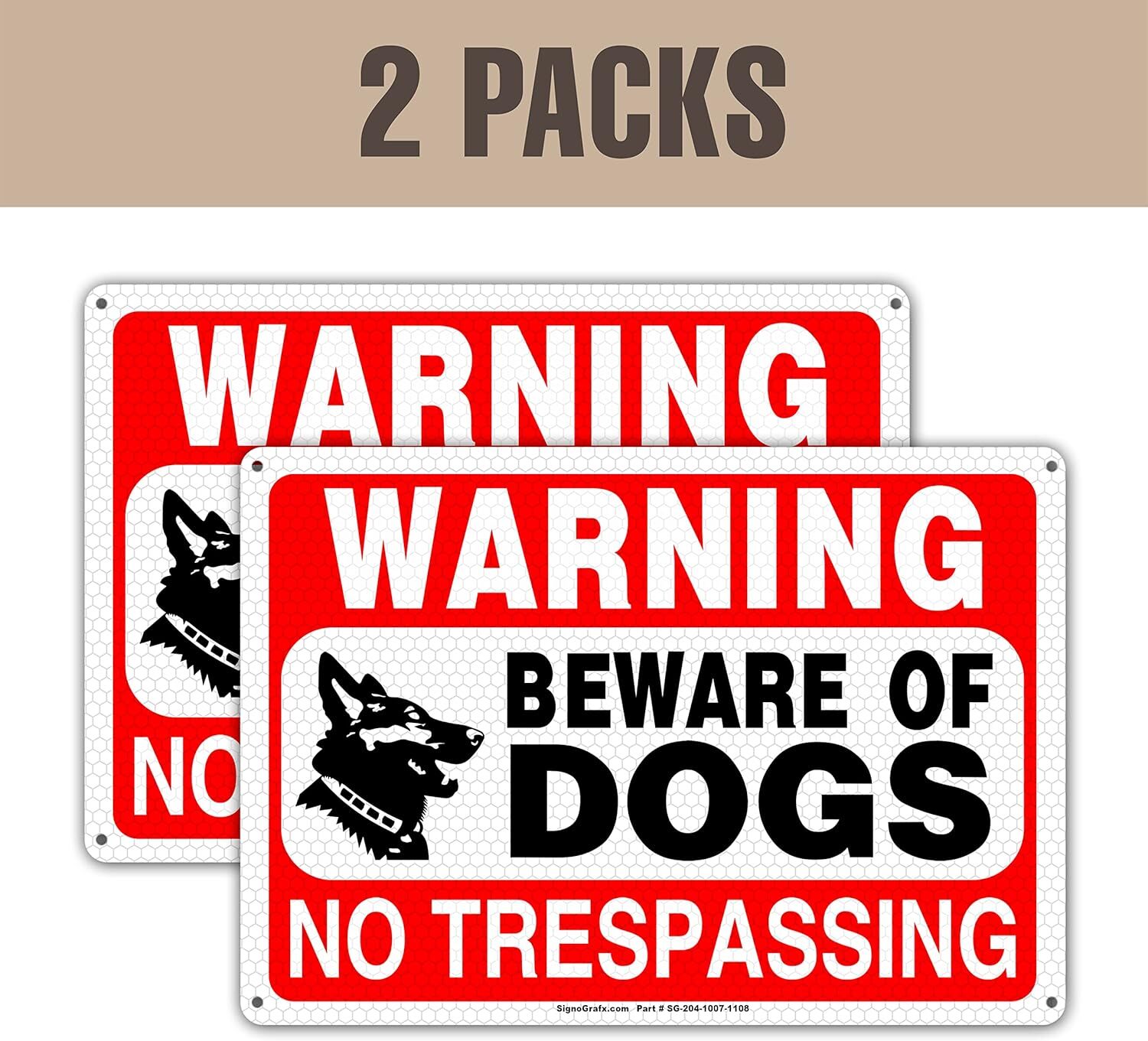 2 Packs BEWARE OF DOGS Sign, Warning 10x7 inches, Red, Black, White