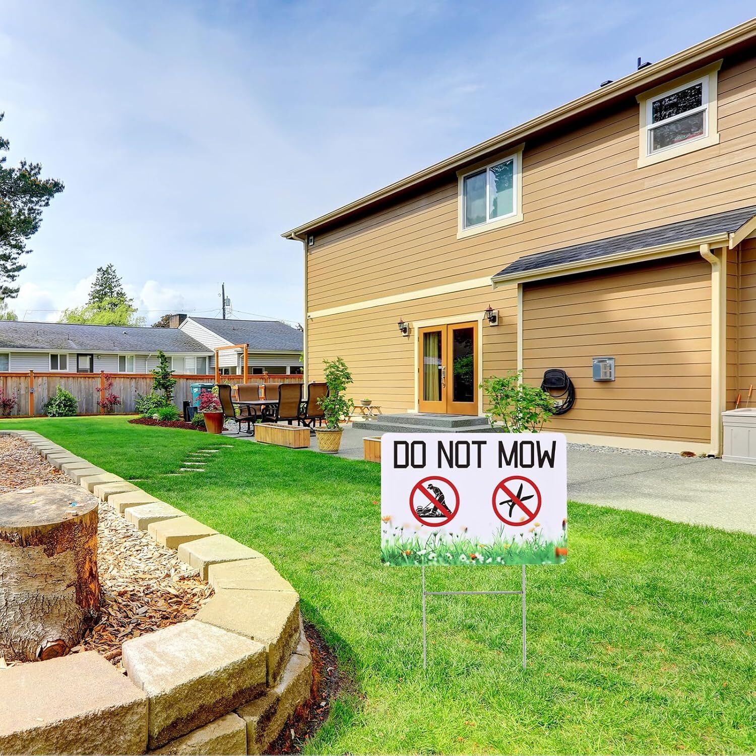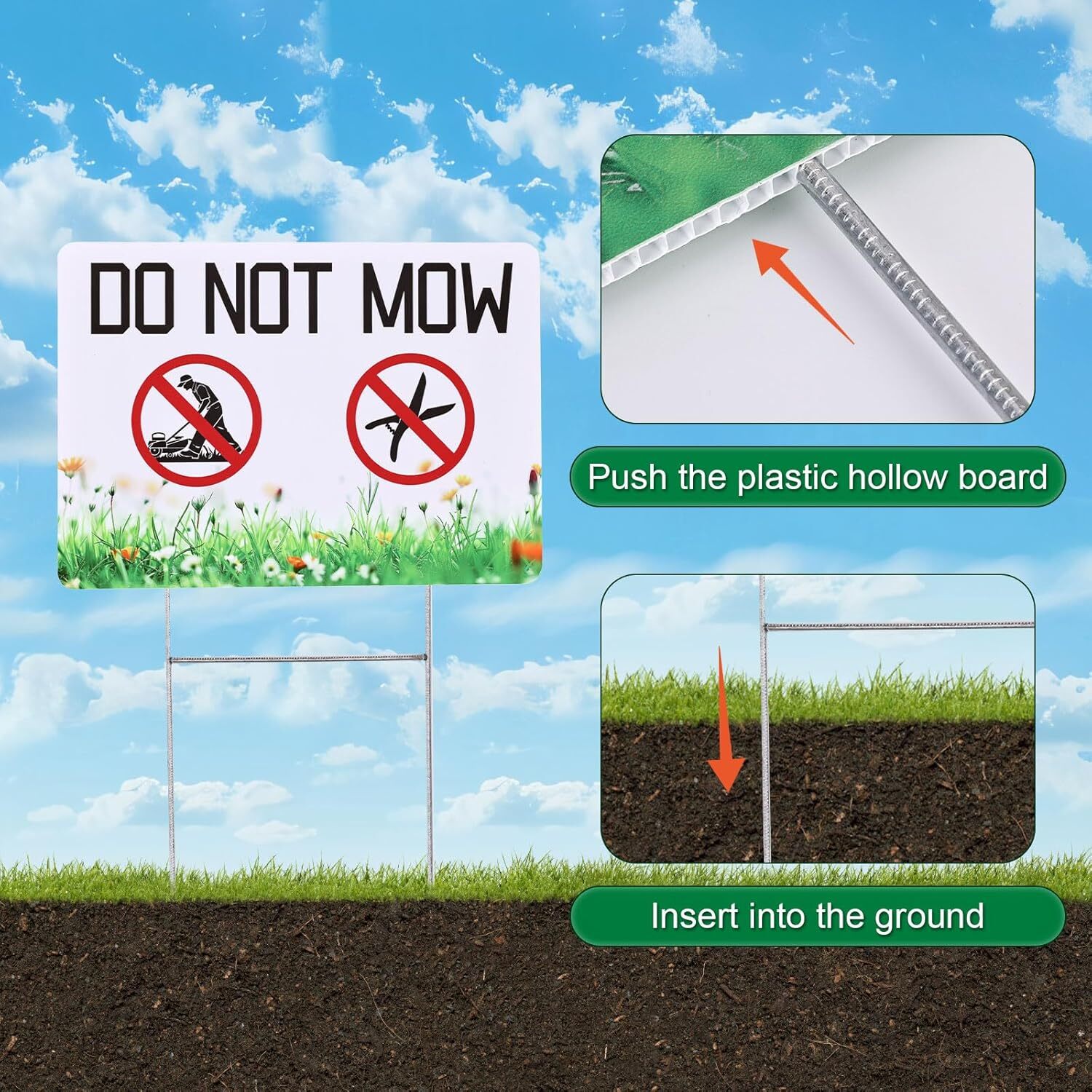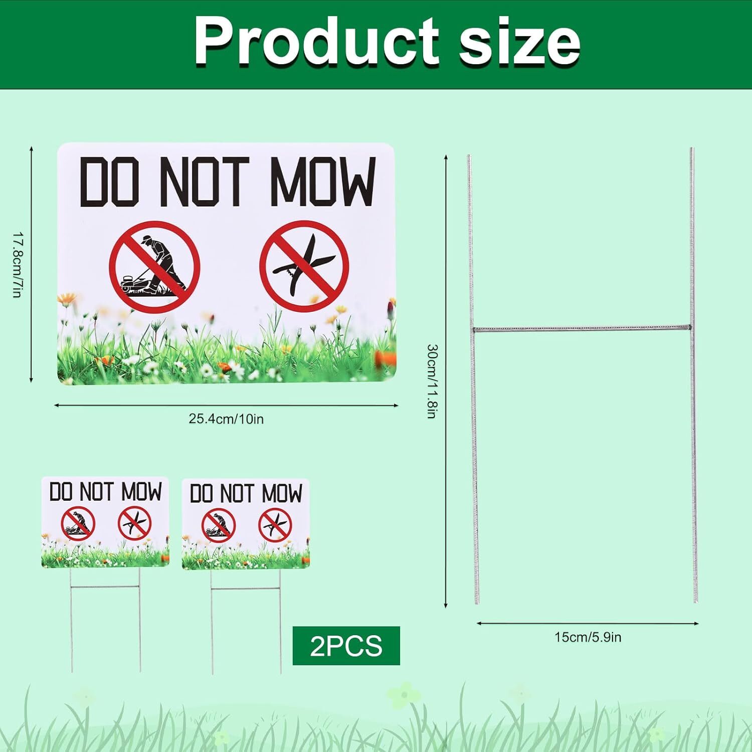 2pcs Do Not Mow Grass Signs, 10 x 7 Inch Trim Yard Signs with Metal M