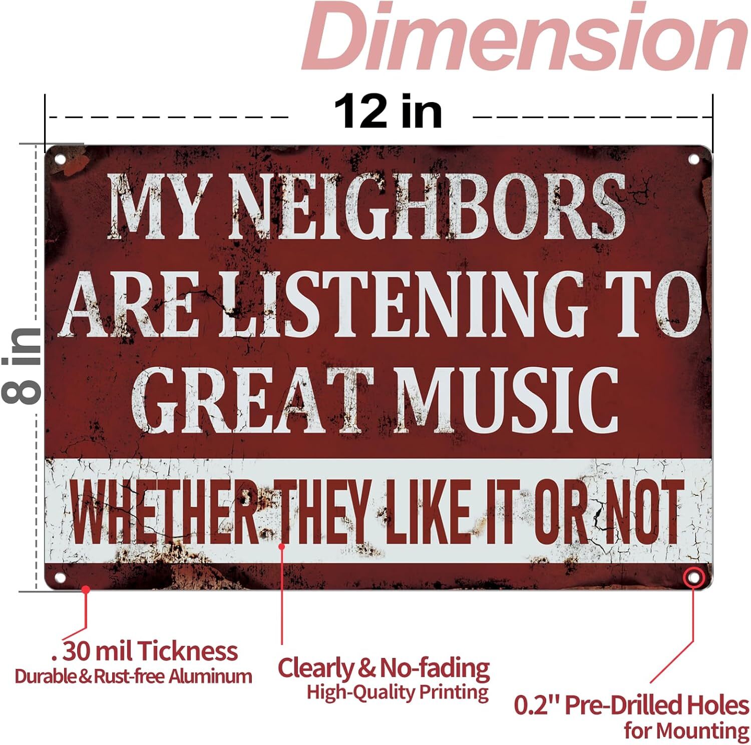 Man Cave Sign - 12 8 Garage Decor Signs- Funny 12 8 IN, NEIGHBOR-MUSIC