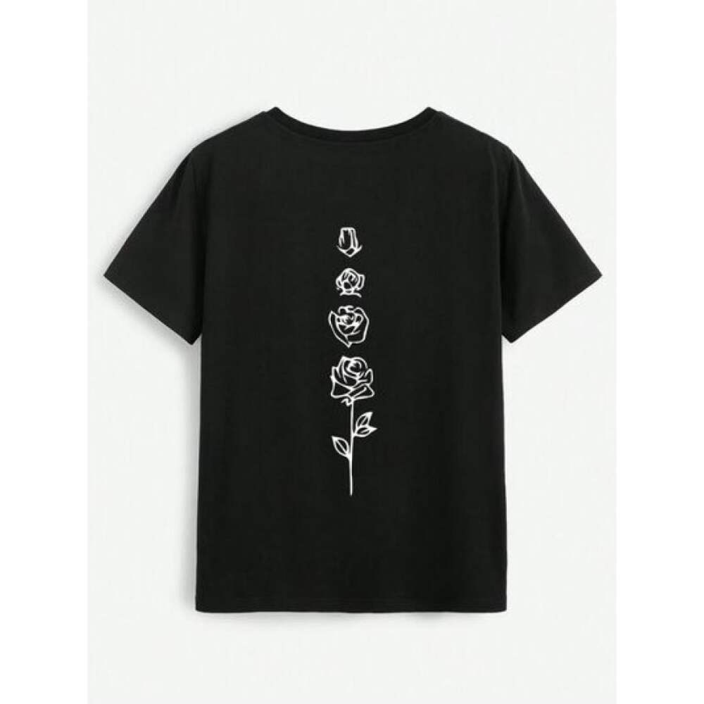как выглядит Rose Round Neck Short Sleeve T-Shirt фото