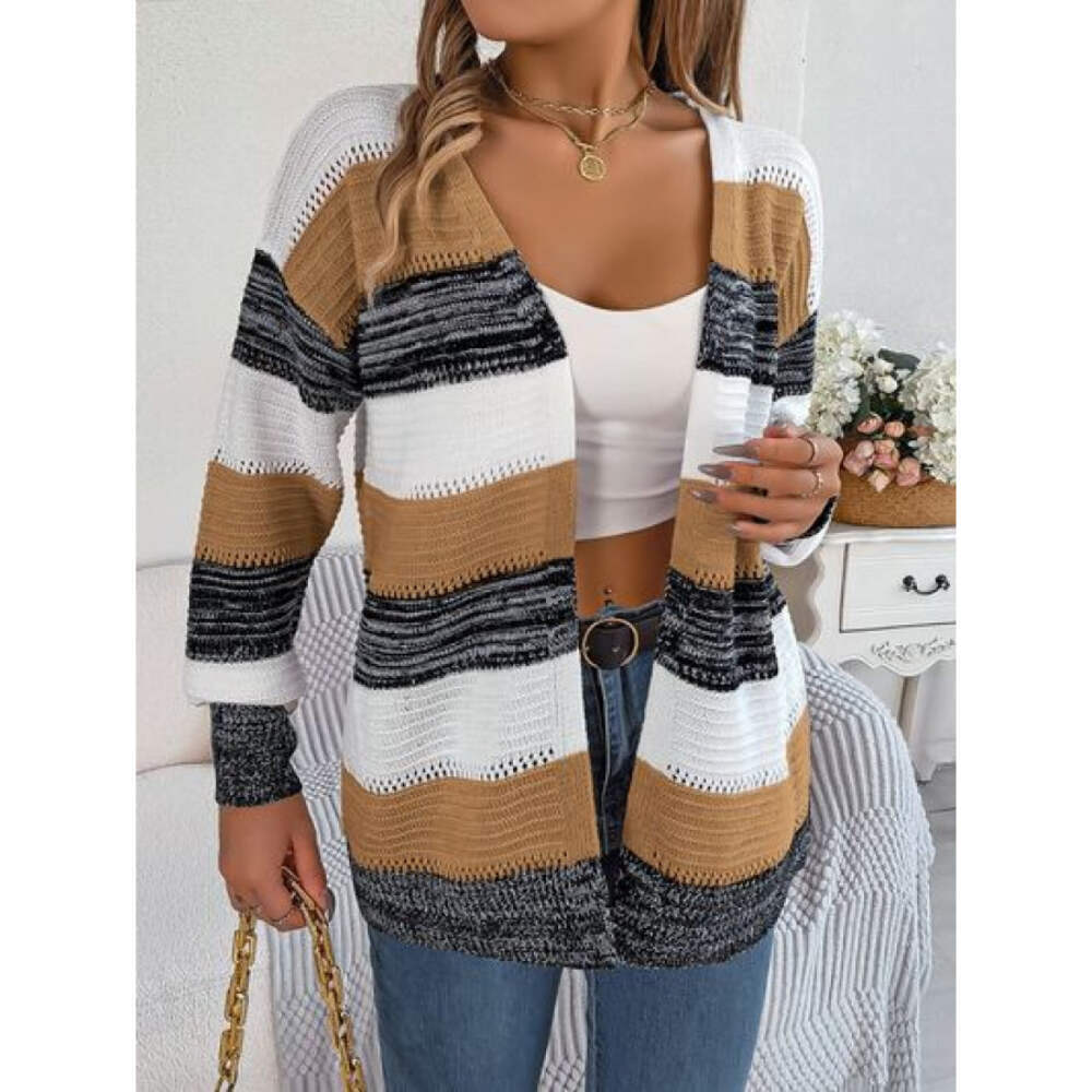 Openwork Striped Open Front Cardigan
