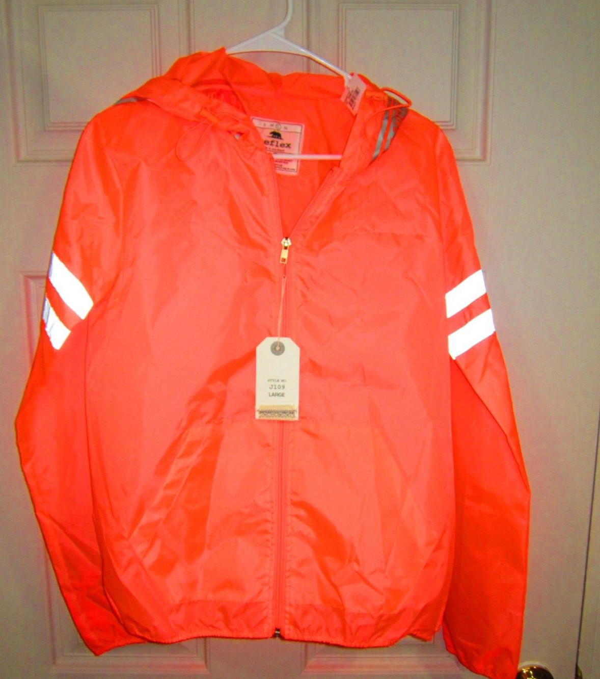 Nylon REFLEX Jacket Hooded Windbreaker Women's sz Large Bright Orange