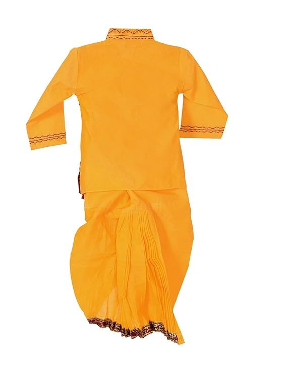 как выглядит Traditional Cotton Krishna Dress with Mor Pankh, Kurta with Dhoti Pant for Kids фото