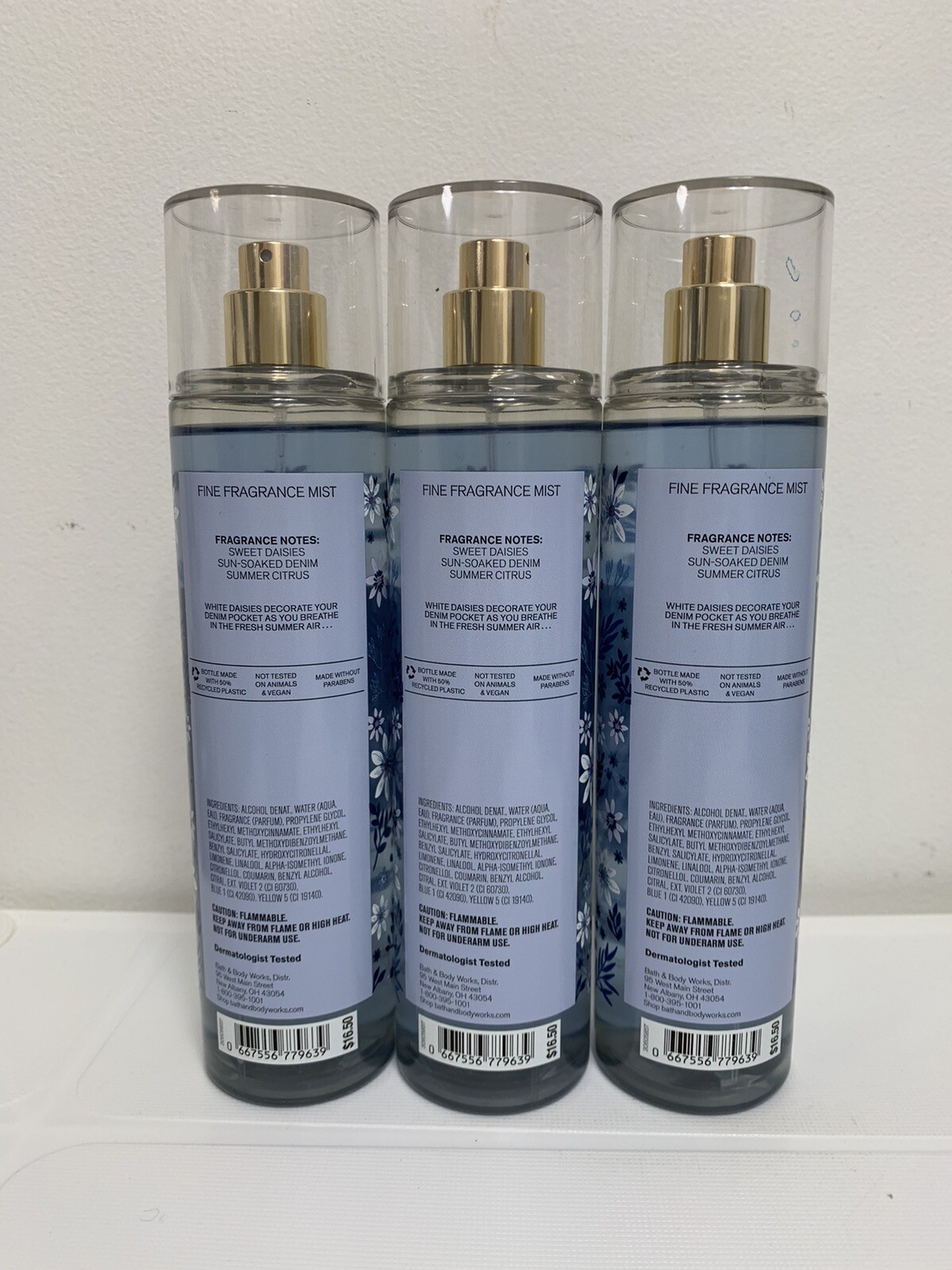 как выглядит 3PC Bath Body Works Denim Daisies Fine Fragrance Mist New фото
