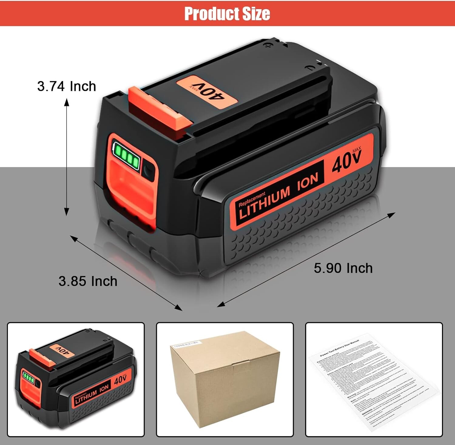 как выглядит 40Volt Battery Replacement for Black and Decker 40V MAX 2.0Ah Lithium LBX2040 фото