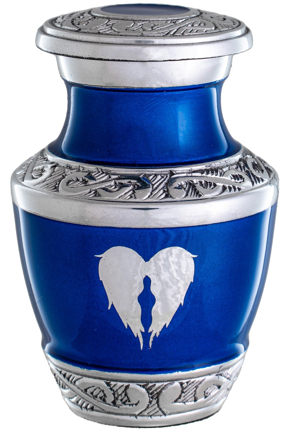 • Small Blue Urn for Ashes Angel Wings - Blue Keepsakes Mini Urns with Heart