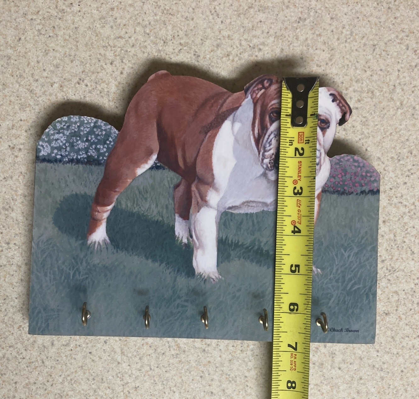 5-Hook Wood Wall Mounted Dog Leash Holder Key Hook Rack English Bulldog