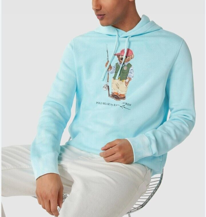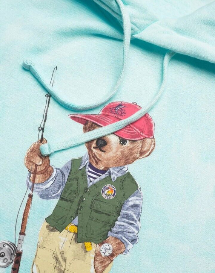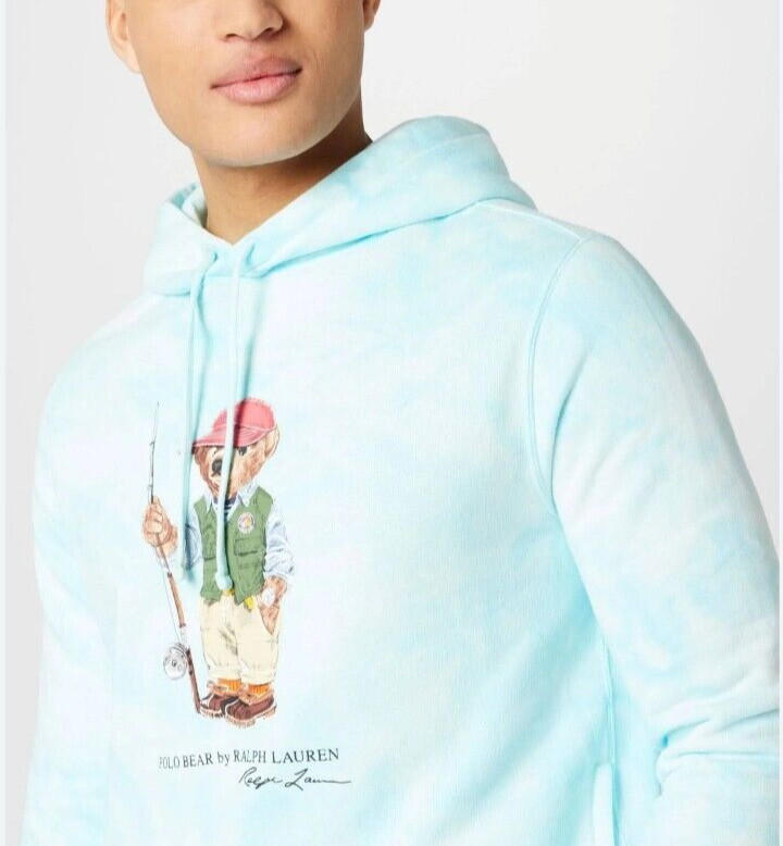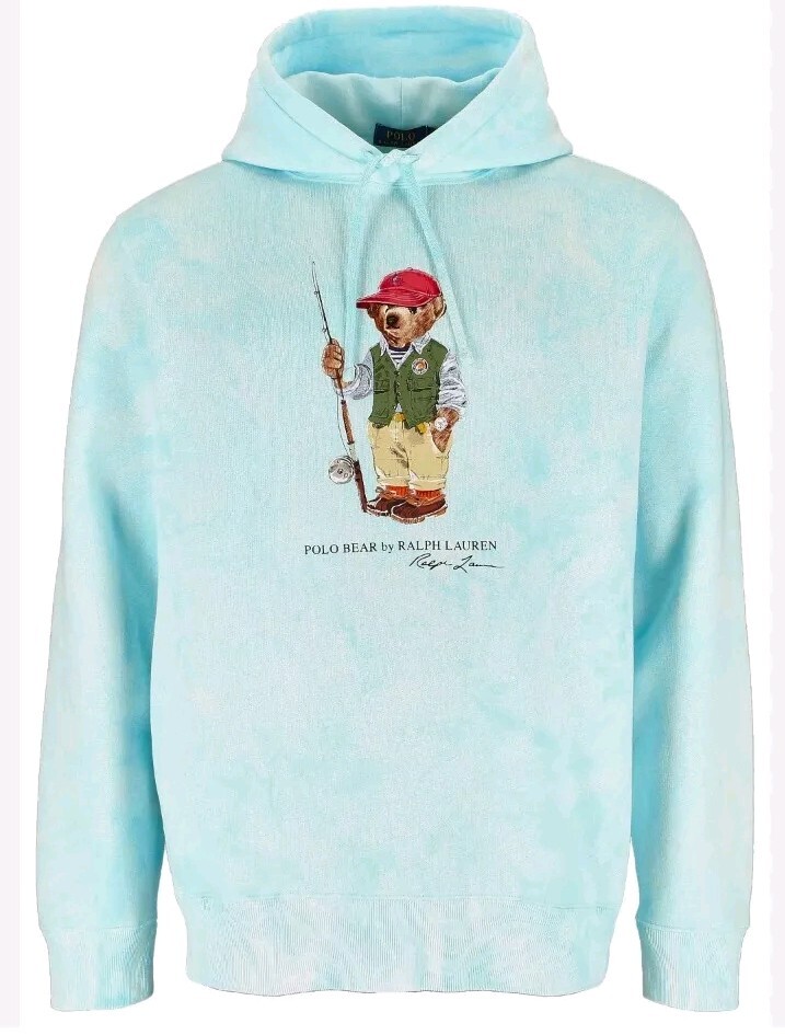 как выглядит Polo Ralph Lauren Mens Blue Tie-Dye Fishing Polo Bear Fleece Pullover Hoodie фото