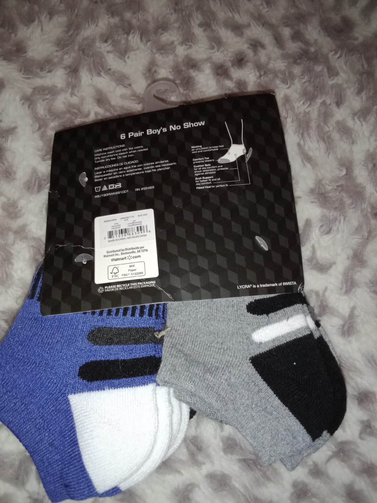 Athletic Works Lycra Boys No Show Socks Size M Shoe Size 9-2.5 6 pack