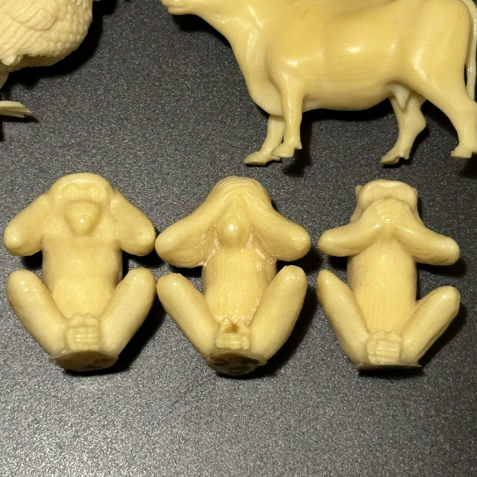 как выглядит 5 Antique Japanese Carved Rooster Bovine Ox Chinese Monkey Celluloid Toy Figure фото