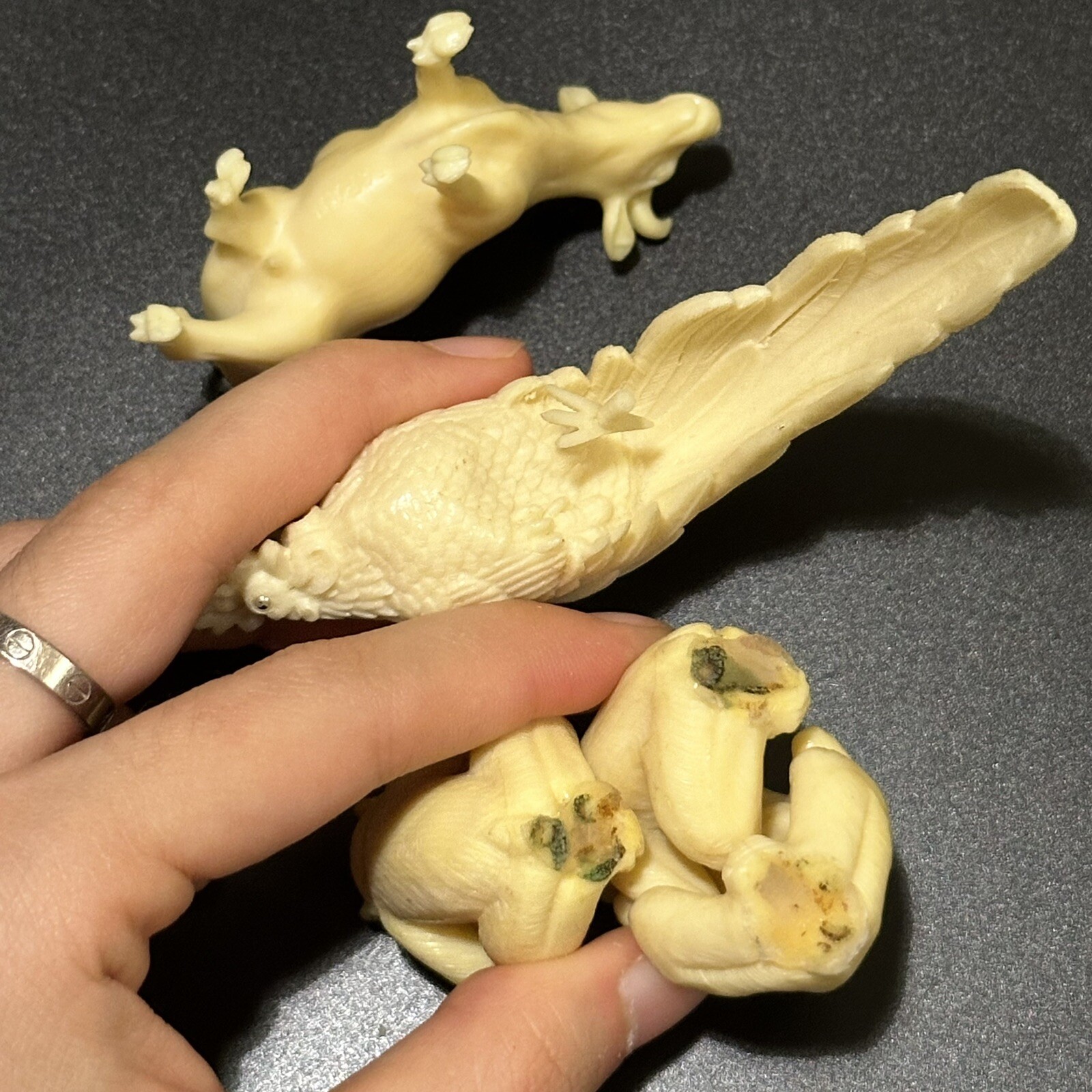 5 Antique Japanese Carved Rooster Bovine Ox Chinese Monkey Celluloid Toy Figure