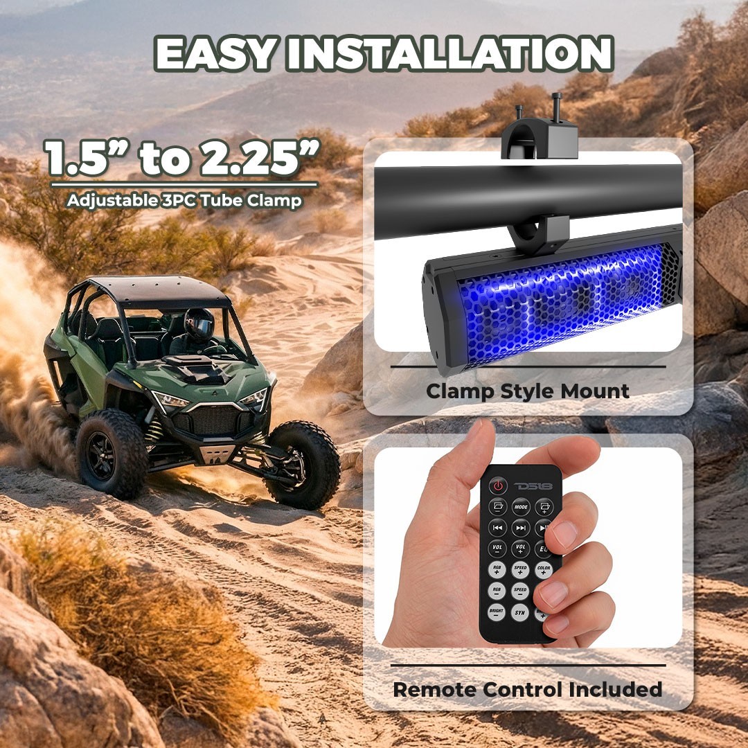 как выглядит DS18 26" Marine Amplified Soundbar with Bluetooth USB RGB Lighting 6 Speakers фото