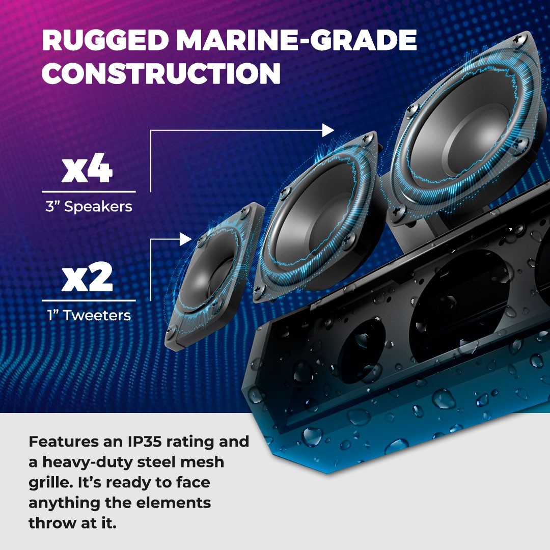 DS18 26 Marine Amplified Soundbar with Bluetooth USB RGB Lighting 6 Speakers