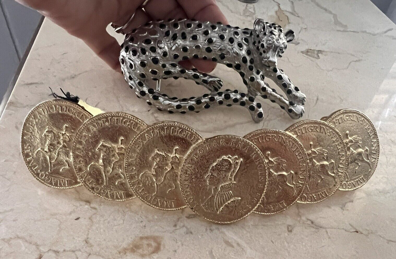 2 Vintage MIMI Di N Long Roman Coin Queen Horse Cheetah Cougar Belt Buckle Lot