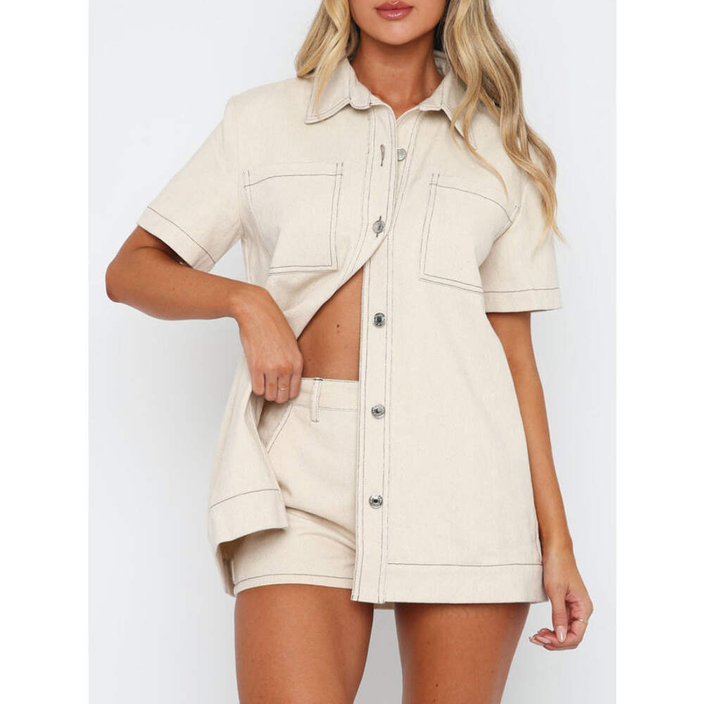 Pocketed Button Up Top and Shorts Set