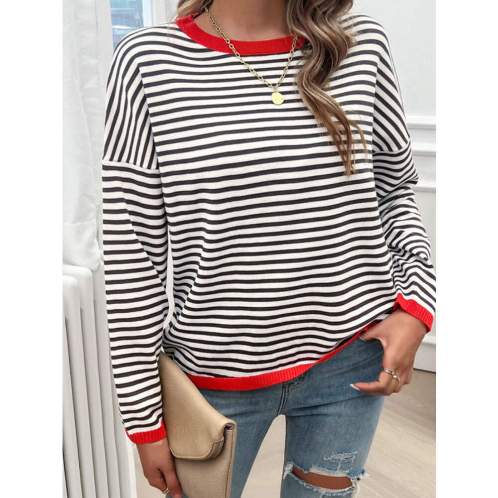 Striped Round Neck Dropped Shoulder Sweater