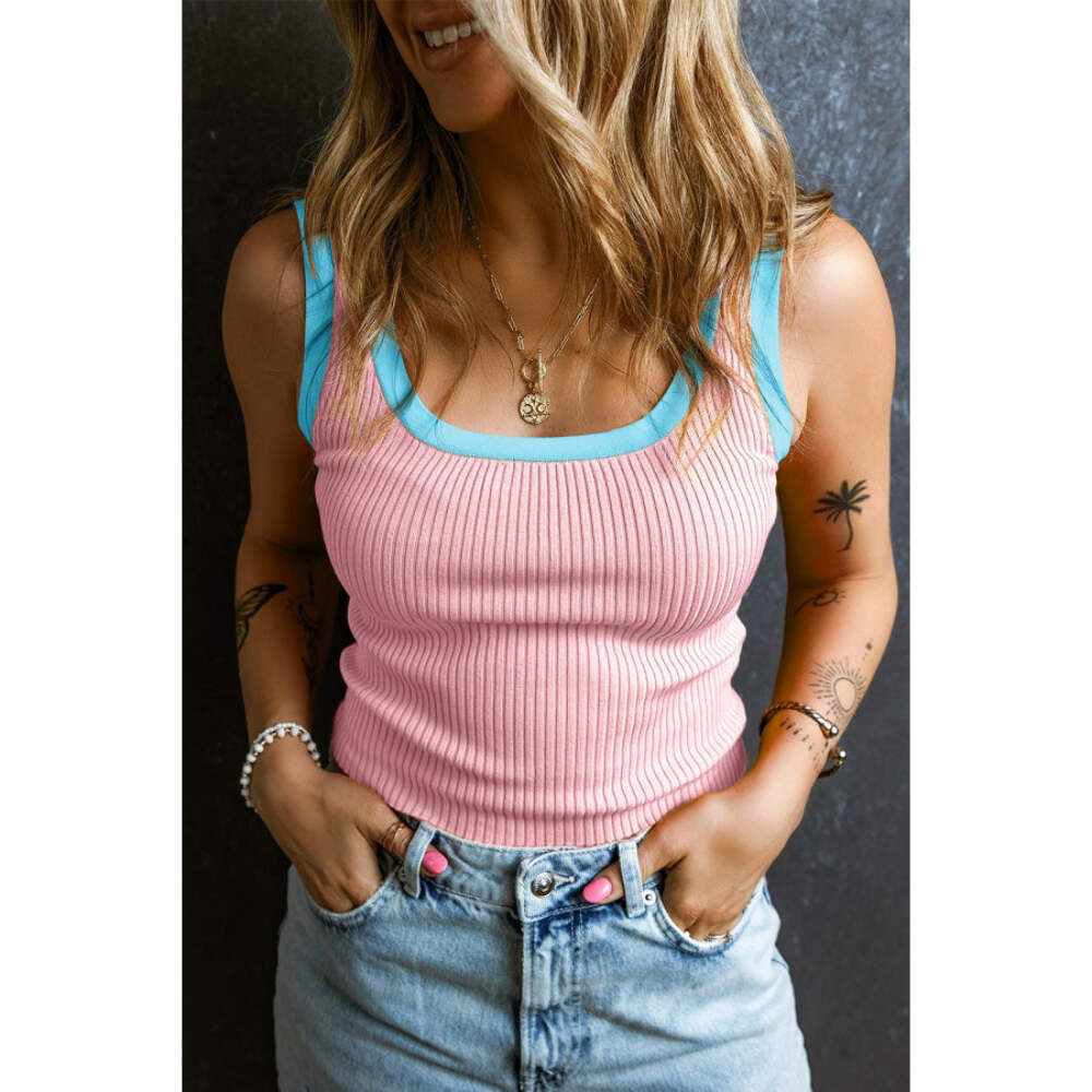 как выглядит Contrast Trim Ribbed Knit Vest фото