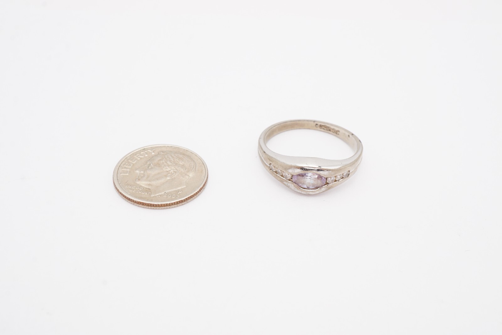 Sterling Silver 925 Purple White Cubic Zirconia Ring Size 8