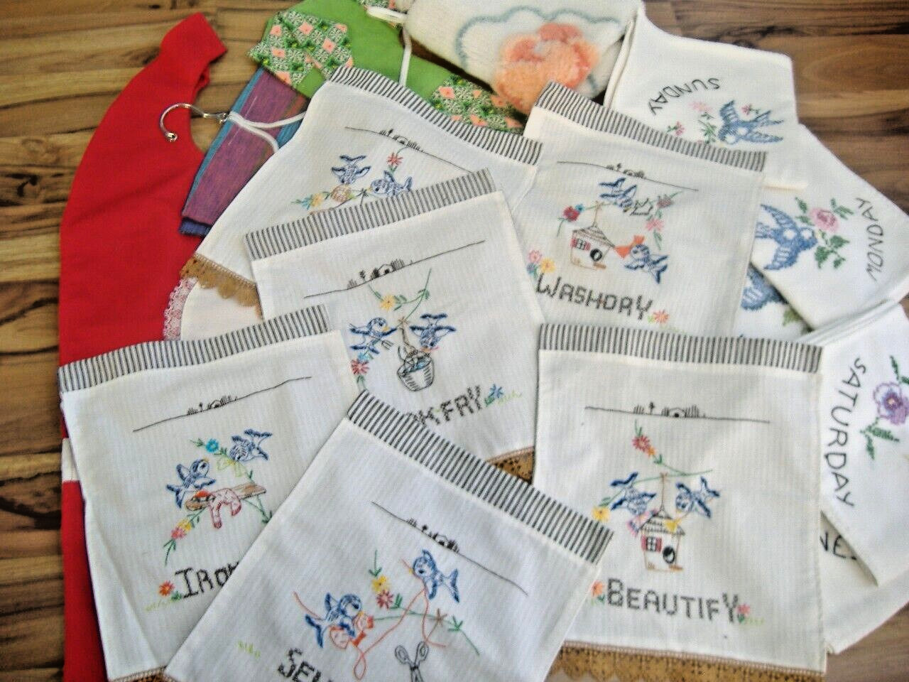 • Vtg Days Of Week Embroidered Bird Tea Towels Kitchen Dish Towels