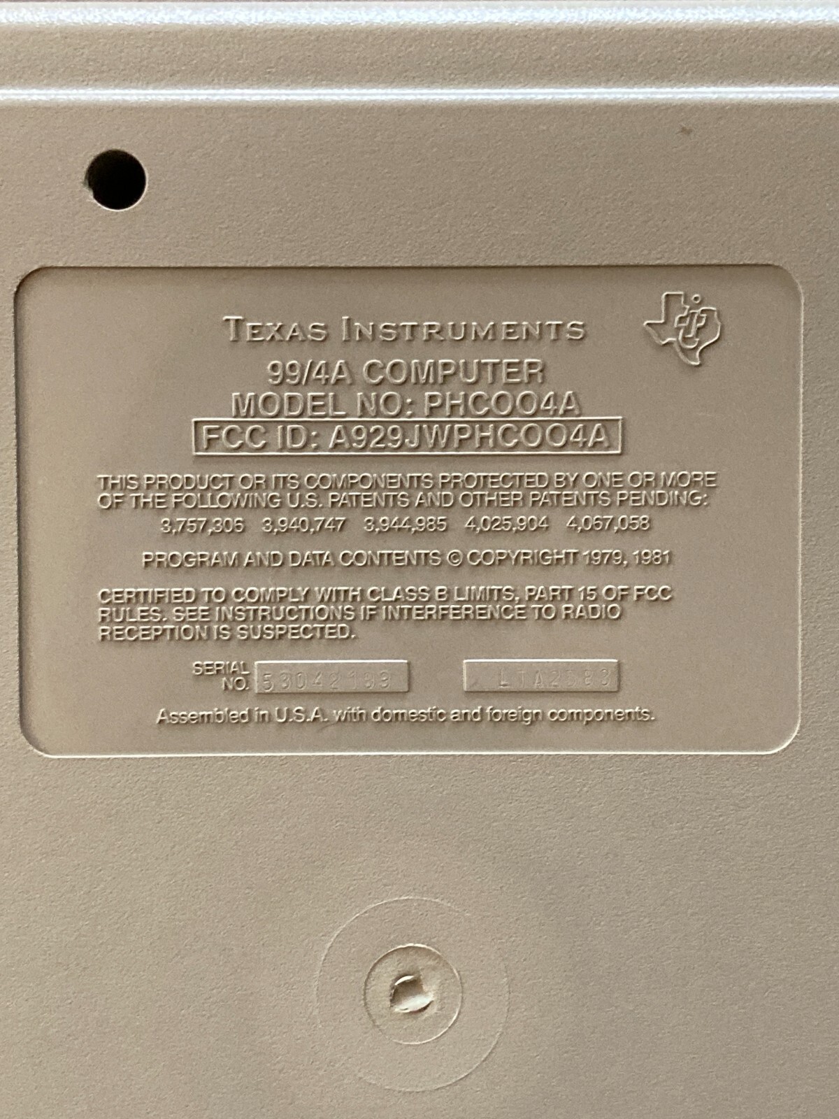 Vintage 1983 Texas Instruments Home Computer 99/4A Model PHC004A NOT TESTED