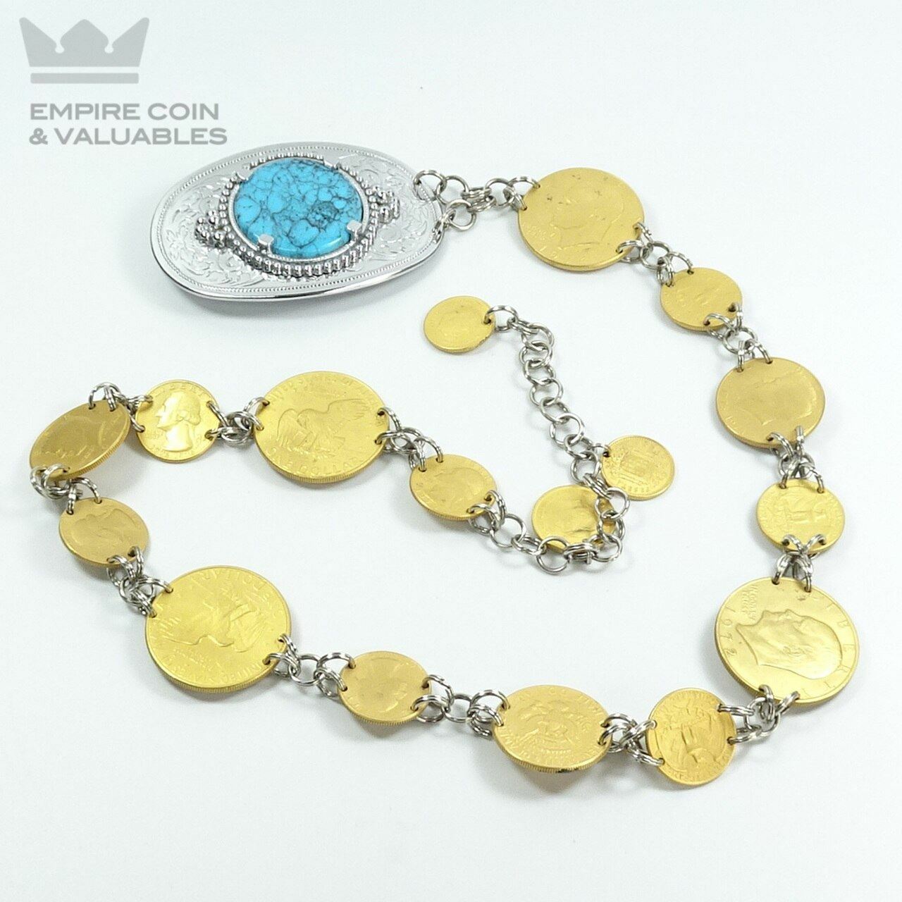 как выглядит Southwestern Concho Style Custom Belt with 7.25 of Gold Plated US COINAGE W1C1 фото