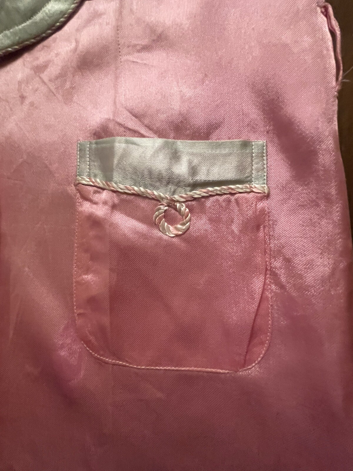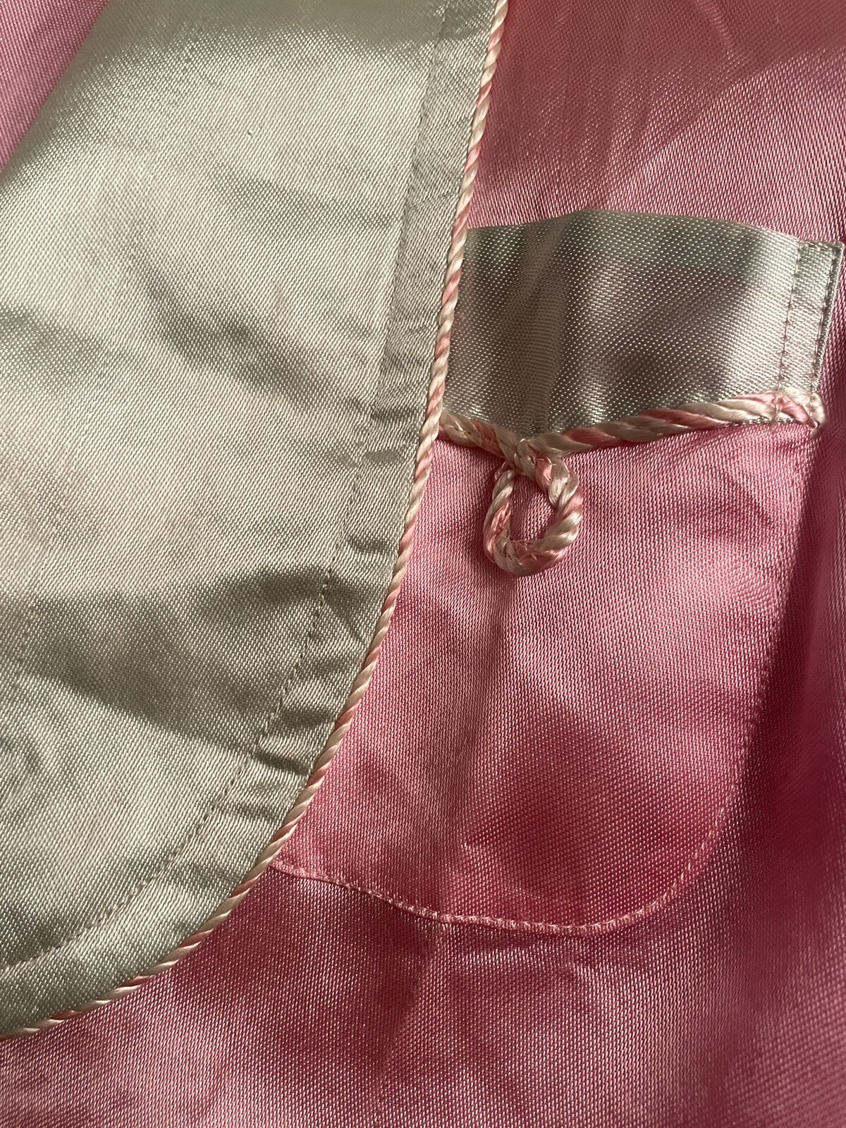 как выглядит Vintage Mid Century Shiny Pink Satin Robe Size 4-5 White Cord Trim Sleepwear фото