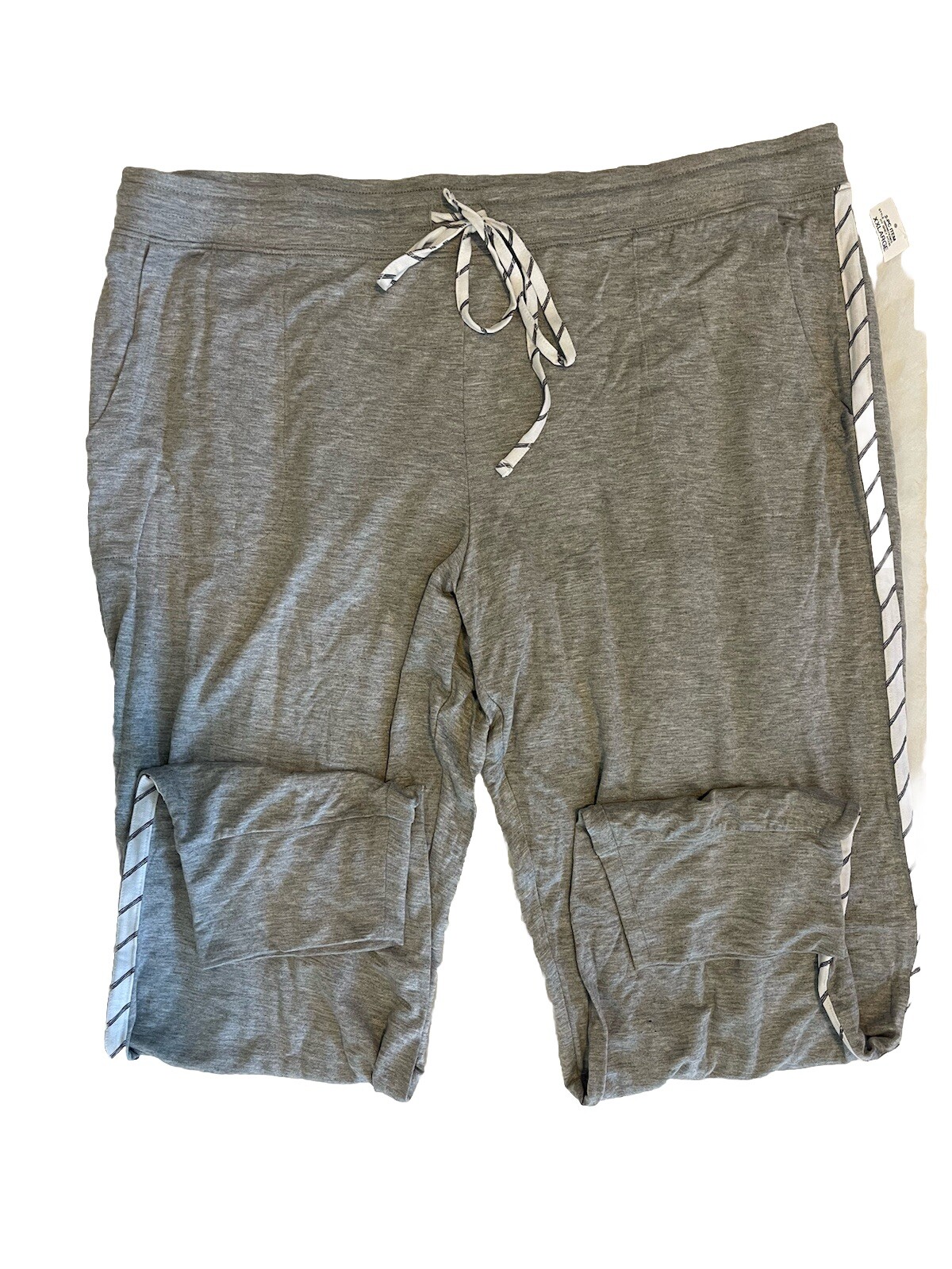 Alfani XXL Ultra-Soft Knit PJ Top Contrast Trim Pants 2pc Set Heather Grey