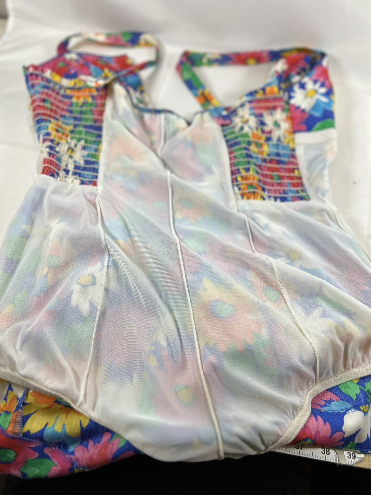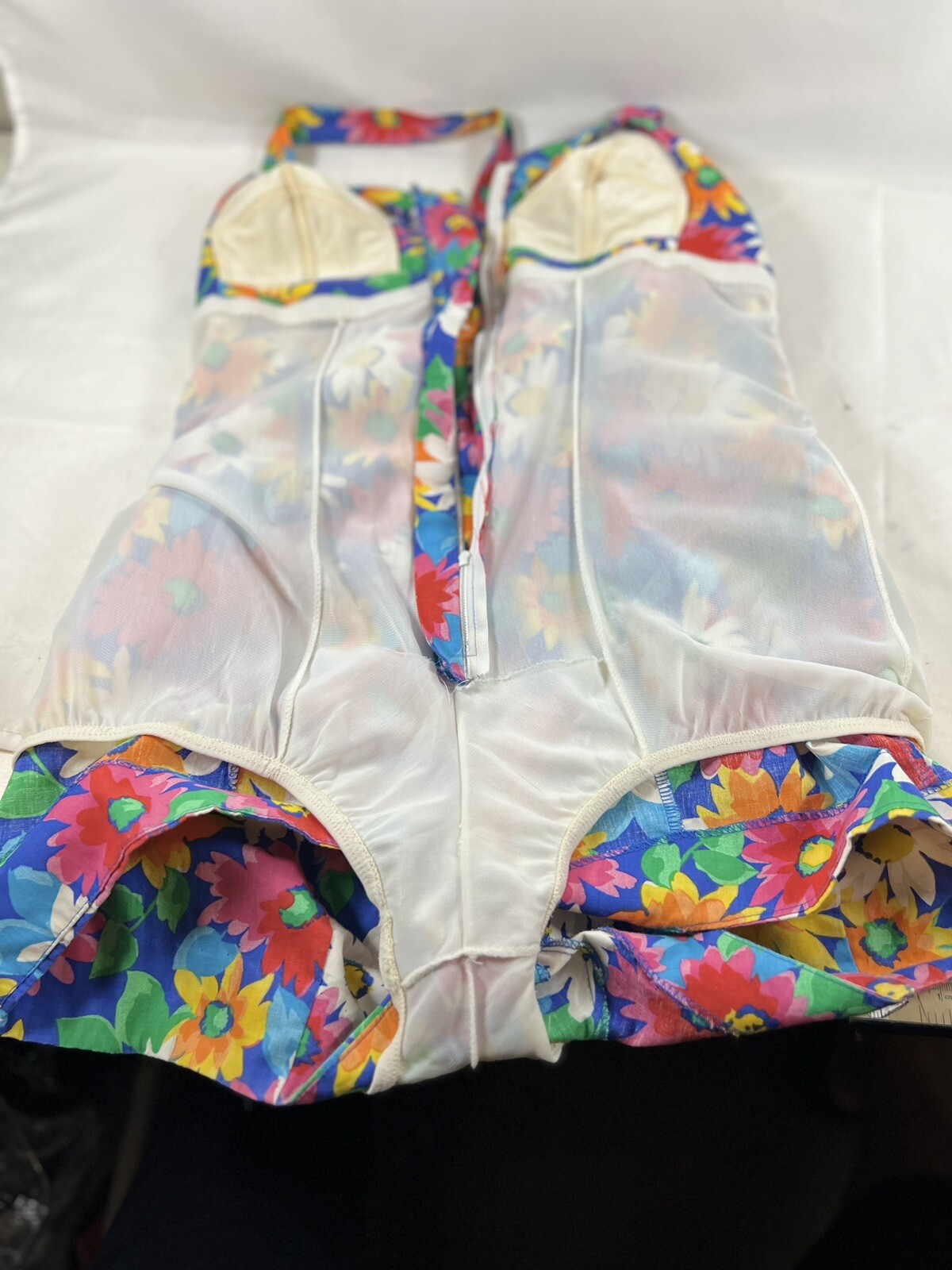 как выглядит 70s Vintage Floral Romper Flower Pattern Cotton Lined Playsuit Swimsuit Print фото