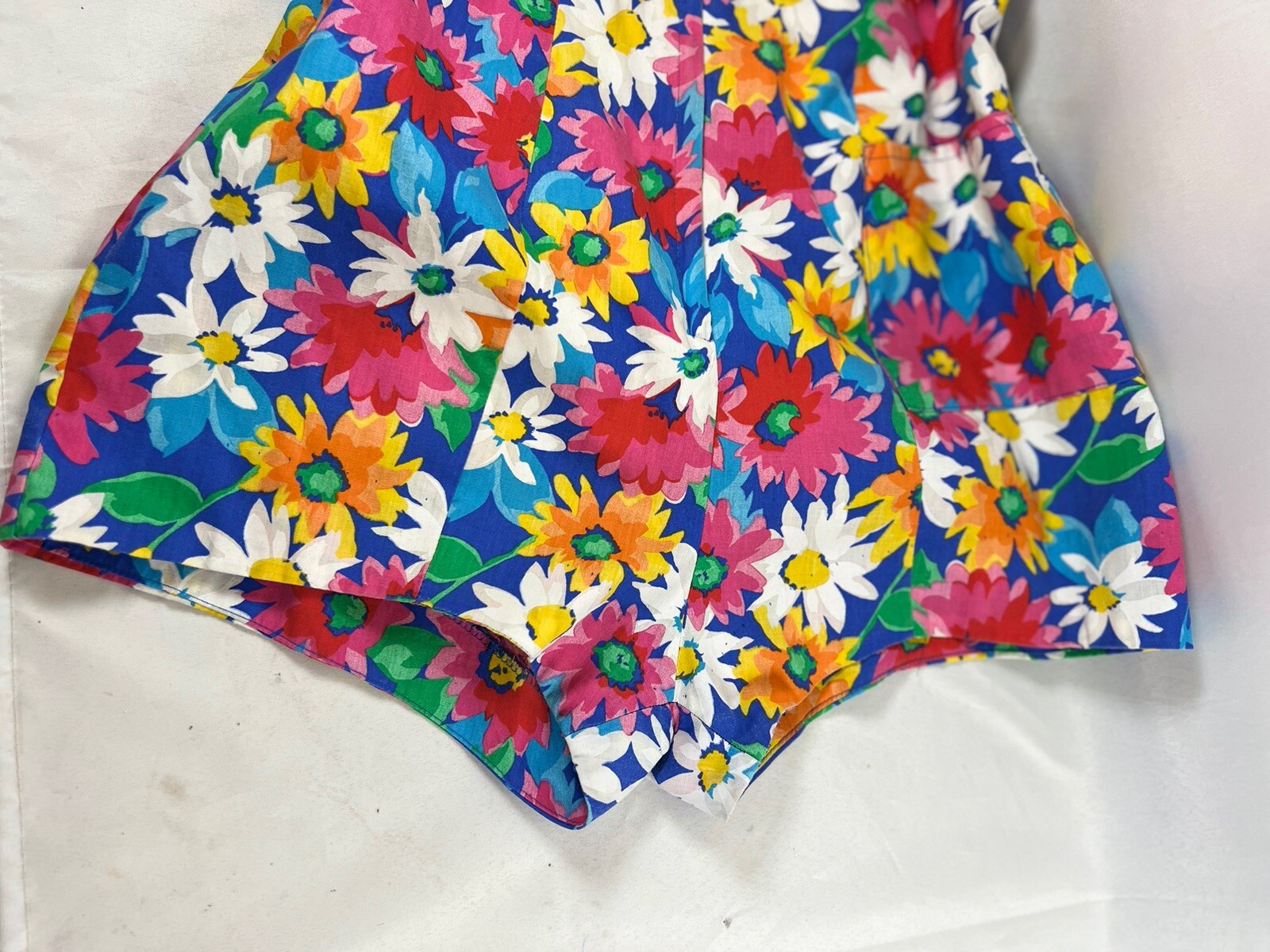 70s Vintage Floral Romper Flower Pattern Cotton Lined Playsuit Swimsuit Print