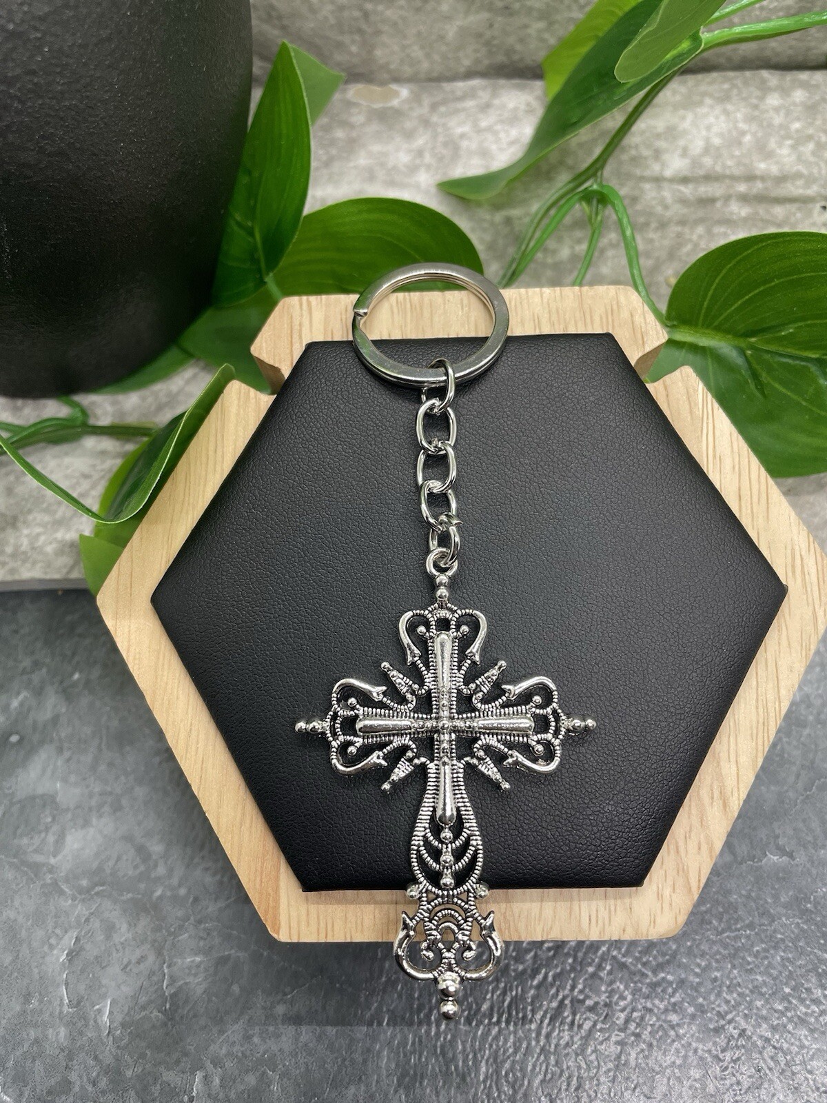 как выглядит 4.5" Handmade Silver-Tone Filigree Cross Pendant Keychain Purse Charm New B2387 фото