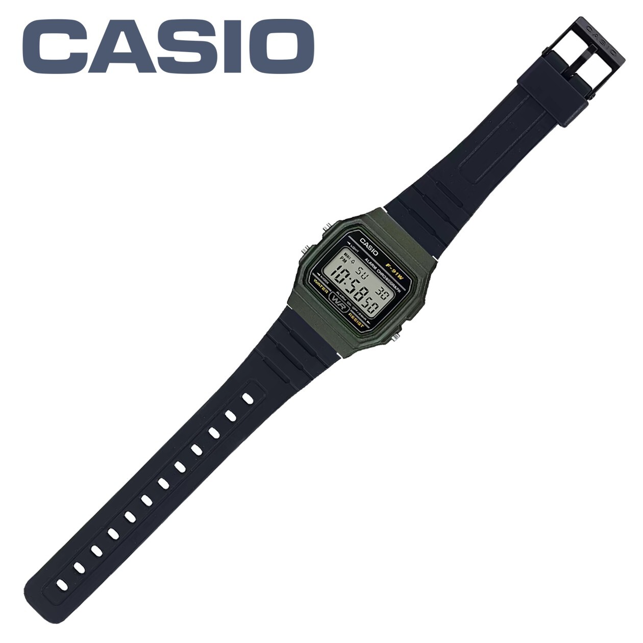 CASIO F-91WM-3AJH Classic Digital Watch Olive Green Case / Black Strap