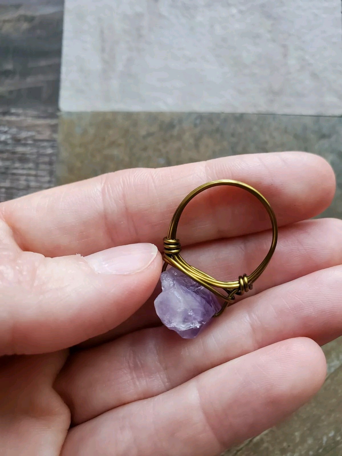 как выглядит Artisan Amethyst Raw Crystal Ring Wire Wrapped Handmade Healing Crystal Boho фото