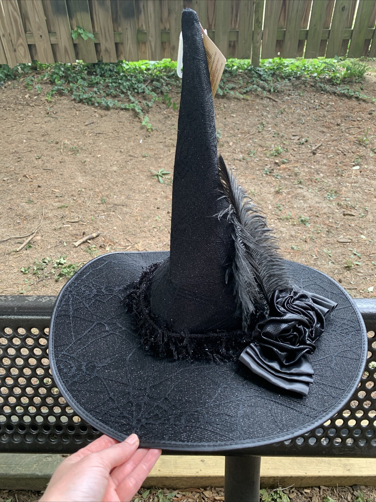 Celebrate It Halloween Witch Hat Black Shimmer W/ Feather Sequin Roses In Bow